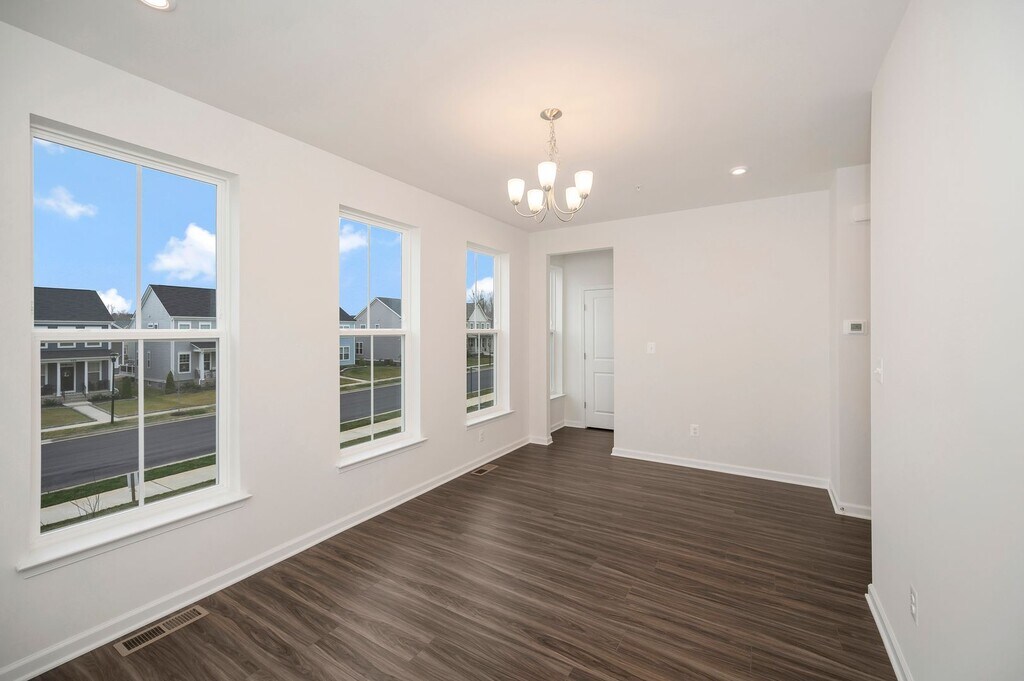 These brand-new townhomes have a two-car garage, paved driveway, and a deck. You will fall in love from the moment you walk in. This interior unit is full of natural light, spacious, and has a wonderfully appointed kitchen with stainless steel appliances, a center island, and a pantry. The kitchen is the center of the home and will make entertaining a breeze. The owner's suite has its en-suite bath with a double vanity and a large walk-in shower. Two more bedrooms, another full bath, and the laundry area finish the upper level—plus a separate office featuring its entrance and a half bath. Enjoy the peace as you work from home. Move in Fee $50