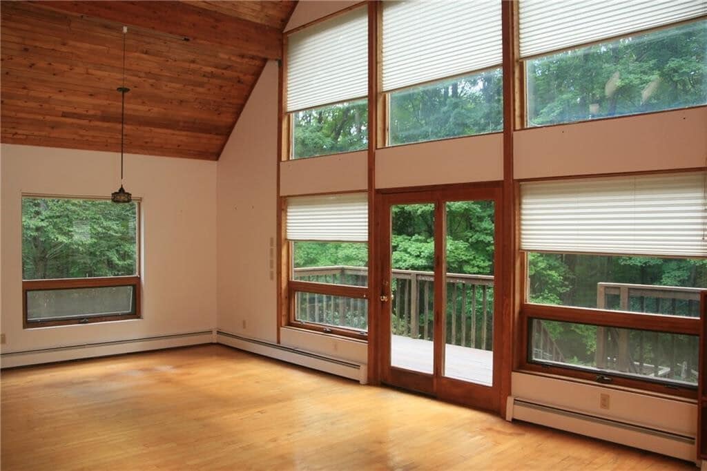 Steven FerrignoPrivate Chateau-Style home set back in the woods. This wonderful 4 bed, 2 bath cape features hardwood floors throughout almost every inch. Entering the property through the main door off of the wrap around deck with Trex decking, you enter the open and impressive living space. Living room to the left, dining area and kitchen to the right, the two-story windows and vaulted ceiling let in loads of light to highlight the impressive woodwork. Fully applianced kitchen, loads of built-ins in the living room, a fully renovated full bath, two spacious bedrooms and washer/dryer round out the reminder of the main level. Up the impressive staircase you'll find the master suite with full bath and walk-in closet. Downstairs you'll find the very large family room with hardwood floors and the passageway to the 4th bedroom with loft area. The utility room and 2 car garage complete the lower level. Minutes to UConn, ECSU, Windham Hospital and I-384 for easy commuting. Lawncare and snow removal included, Move-in Ready.