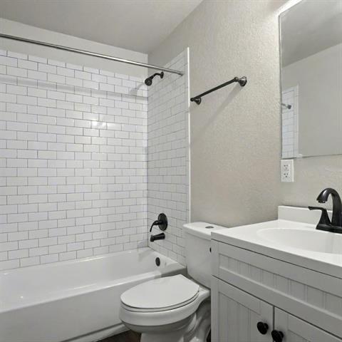 Renovated 2BR with Stainless Appliances across from UNT No App or Admin Fees! Nice 2-bed, 2-bath unit in Denton near I-35 and UNT! Features wood look vinyl floors, updated bathrooms with black fixtures, and an open-concept floorplan with view into the kitchen. Kitchen offers stainless-steel range, dishwasher, microwave AND refrigerator. Both bedrooms are separate from main living area. Two full baths with tubs and subway tile shower walls. Includes plenty of paved off-street parking and laundry room onsite! Great location close to school, shopping, dining, and highways!