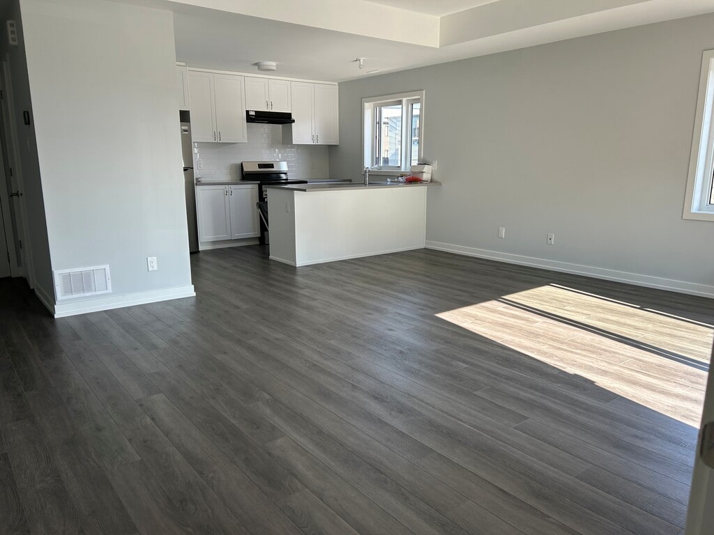 Beautiful 3Bed, 2 Bath stacked townhome in prime Orleans location! The bright and spacious open-concept main floor features a living and dining area with patio doors leading to your own private balcony. The kitchen showcases elegant white cabinetry, quartz countertops, a subway tile backsplash, and a breakfast bar ideal for casual dining or entertaining. Upstairs, you'll find 3 generously sized bedrooms that share a full bath. One of the bedrooms features its own balcony for extra outdoor space. Laundry is conveniently located on this level as well. This home also includes one assigned parking space. Recreation lovers will appreciate the proximity to Ray Friel and Francois Dupuis Recreation Centres, along with nearby shops, schools, and public transit.