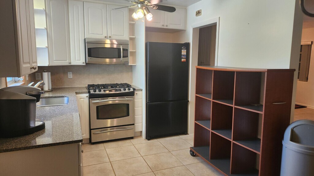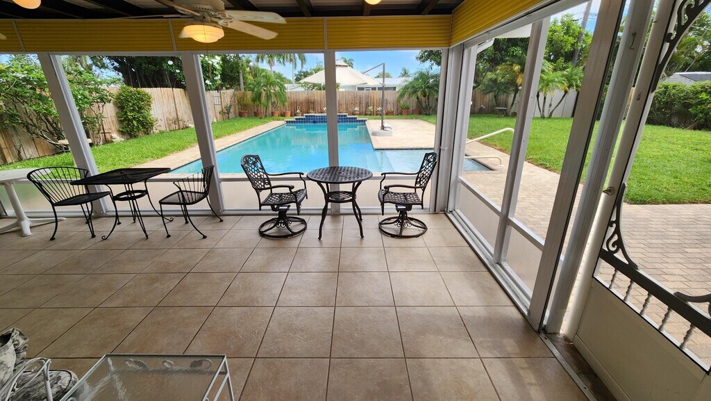 Impeccably maintained 2 BR / 2 BA home w nearly 1/4AC private oasis - heated pool w/shelf & bubblers, fenced yard, tons of room to entertain. NO HOA, pets welcome (w landlord approval)! Rent INCLUDES landscape, pool maintenance, & ADT! Large living area, granite kitchen, tile throughout, gas range, jetted bath, 2 massage chairs, large tiled screen patio. Surprising amount of storage. Circular driveway w plenty of parking, covered carport. Hurricane protection, monitored security system. Walk to Avalon. Great location close to restaurants, shopping, golf, boating, fishing, diving, Palm Beach International Airport.