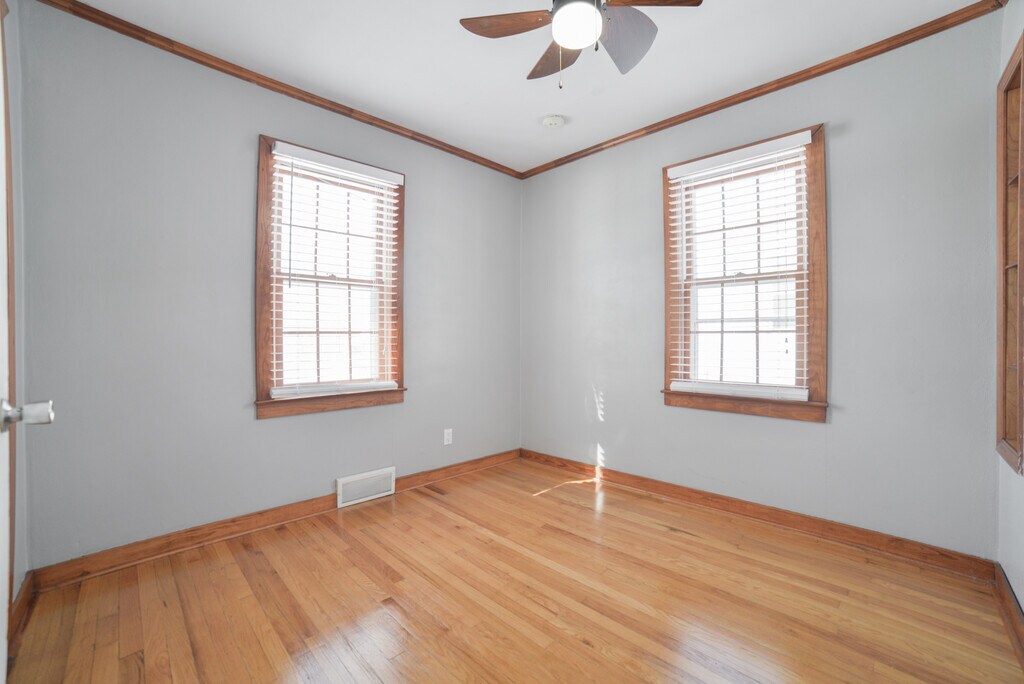 This charming 3 bedroom, 2 full bathroom home offers multiple living spaces, a fenced yard, and a flexible layout that works well for everyday living. On the main level you'll find the living room, a separate dining room, kitchen, two bedrooms, and a full bathroom. Hardwood floors run throughout this level and the bathroom features a tiled shower for a clean, updated feel. Upstairs is a private primary suite complete with his-and-her closets and its own dedicated mini-split system to keep the temperature comfortable year-round. The walk-out basement adds great bonus space with a family room/den, a second full bathroom, and laundry area. From here you can step directly outside into the fully fenced backyard. Outside you'll enjoy a landscaped front yard, concrete driveway for off-street parking, and a backyard patio plus a storage shed for lawn equipment (tenants are responsible for lawn care). While the home offers plenty of functional space and storage, the rooms and kitchen are more cozy than oversized making it a great fit for someone who values character, separate living areas, and outdoor space over large open-concept layouts. Tenant is responsible for City Bill and Gas Bill and lawn care. Pets are considered with a Pet Fee Agreement. Pets are $500 deposit per pet. UP TO $250 of each deposit is refundable at the end of the lease. There is an application process which includes Background and Credit Check. HUD/Section 8 not accepted. Home will be Move in Ready April 1st. Tenant is responsible for all utilities and lawn care. Shorter lease terms available at a higher rate.