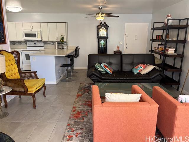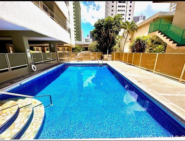 Located at Governor Cleghorn in the heart of Waikiki, this tastefully furnished 2-bedroom, 1-bathroom condo offers convenience and comfort just minutes from Waikiki Beach, the International Marketplace, and countless shops and dining options. The unit features approximately 830 sq. ft. of interior living space with tile flooring, ceiling fans, and a large covered lanai with a storage closet. Enjoy a modern open kitchen equipped with newer cabinets, quartz countertops, and stainless steel appliances including a refrigerator, range/oven, and microwave. The renovated bathroom features a newer shower with quartz surround, and the added convenience of an in-unit washer and dryer enhances everyday living. One uncovered (compact) parking stall is included. This secured building offers a Resident Manager, trash chute, and a saltwater swimming pool. No pets and no smoking allowed. Renters insurance is required. The initial lease term is 6 months, and the monthly rent of $3,000 includes water, sewer, and basic cable. To schedule a showing, please text Alohi Bumanglag (RA) with KMJ Realty LLC at .