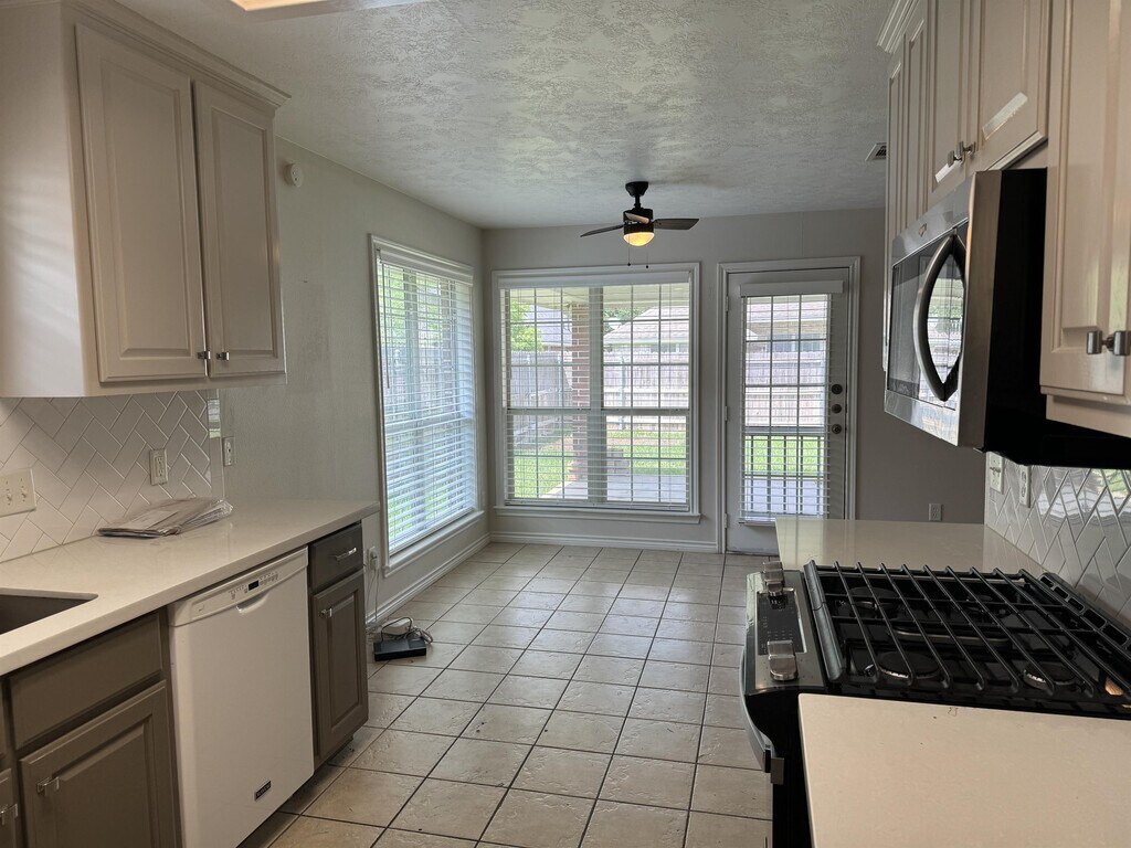 Beautiful updated 3 bedroom, 2 bath in Edelweiss Gartens. Large living room with corner gas fireplace and loads of light through the large windows! Living area opens into the airy and light dining area and kitchen with french door onto massive private porch. Kitchen cabinetry, countertops and appliances have been updated including gas range. Separate pantry provides plenty of storage space. Kitchen includes french door refrigerator, new gas range and microwave and of course dishwasher. Utility includes the washer and dryer. Two car garage with automatic opener. Large Primary suite has tray ceiling, deep walk in closet, updated bath with oversized walk in shower with rain head and new vanity. Two secondary bedrooms share updated second bath. LVP flooring and tile throughout. Corner lot with groomed yard and lawn maintenance is done for you!! Come quick for this one! No students except Grad students. AVAILABLE FOR MOVE IN ON 7/21/2026 Verification of renters insurance required before move in. Pets approved on individual basis. Please note: Renters Insurance Verification is required before move in.