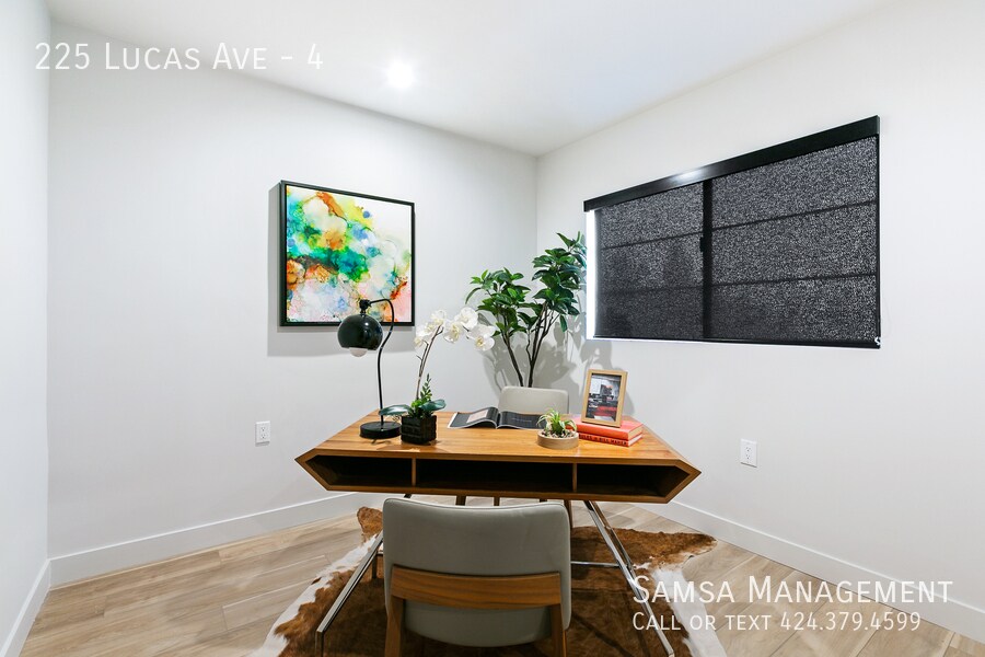 225 Lucas Ave. #4 Los Angeles, CA 90026 Available NOW! Welcome to 215-225 Lucas Ave, a new high-end apartment complex located just minutes away from downtown LA. Enjoy the best of both worlds with the peace and tranquility of the Echo Park neighborhood and the convenience of living close to the city's top attractions. This beautiful 3 bedroom, 2 bathroom apartment features a spacious and open floor plan with hardwood flooring throughout the living room and kitchen. The kitchen boasts all-new stainless steel appliances, jet-black quartz countertops, and matte black finishes that are sure to impress your guests. Stay comfortable all year round with the mini-split AC system and enjoy the convenience of having a washer and dryer in-unit. The bedrooms feature mirror closets and recessed lighting to create a cozy and modern ambiance. Experience luxury living at its finest with the amenities of 215-225 Lucas Ave, including beautifully landscaped gardens and picturesque landscapes. Don't miss out on this opportunity to live in one of LA's newest and most sought-after apartment complexes. Schedule a viewing today! Disclaimer - Please note that the pictures may not be of the exact vacant unit but represent the style and fixtures of the exact unit. AMENITIES: - Stainless Steel Appliances - Hardwood Flooring - Minisplit AC System - Washer and dryer in-unit. - Mirror Closets - Recessed Lighting UTILITIES INCLUDED: - hot water, cold water, gas, and gardener DETAILS: - 3 bedrooms / 2 bathrooms - 2nd floor - 1,050 sqft PARKING: - 1 parking spot. - Parking available for rent PET POLICY: - will consider pets. RENTAL TERMS: - Available: NOW! - Application Fee: $36 (Non- Refundable) - Lease: 1-year minimum.