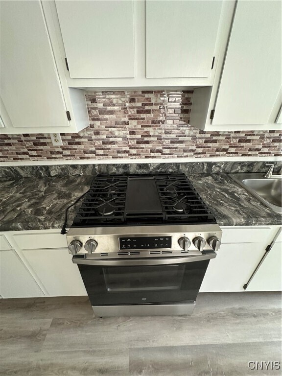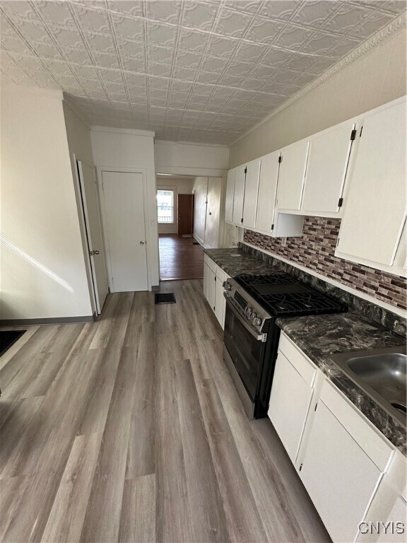 A totally renovated apartment,town house style. Large living room with hardwood floors. Eat in kitchen with new gas stove/oven and luxury vinyl flooring. First floor half bath. Upstairs are the 2 bedrooms with a central,Jack & Jill style full bath. There is a washer + dryer in the basement for your use. The front porch is yours to enjoy as well along with a back entrance with a landing. Quiet neighborhood.