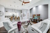 This beautifully custom-designed home is filled with upgrades that truly make it stand out. The spacious open floor plan centers around a chef's kitchen with an oversized island,perfect for cooking,entertaining,and everyday living. A formal dining room adds elegance,while the luxurious master suite offers a spa-like bath and a large walk-in closet. A versatile flex room provides the ideal space for a home office or playroom. The screened lanai overlooks the peaceful preserve,creating a private retreat. Tile,laminate and vinyl flooring flow throughout the home for a clean and modern touch. Additional features include a three-car garage with epoxy flooring,a central vacuum system,custom light fixtures,and stainless steel appliances. Easy to show and ready for new tenants,this property is a must-see.