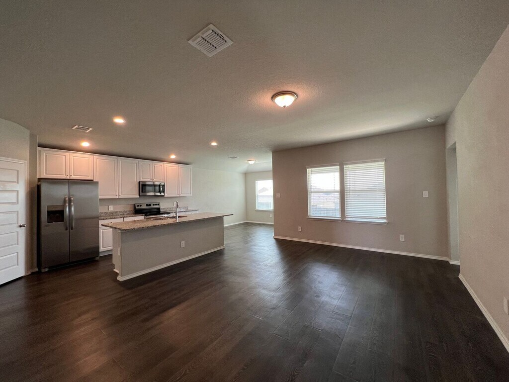 Beautiful 4/2 home in the highly desired White Wing subdivision, NBTX. Gorgeous kitchen with stainless steel appliances and deep double sink on large island. Three bedrooms and second bath with Jack and Jill entrance are on one end of the home and the primary bedroom is on the other for privacy. Lovely flooring throughout the home with carpet located only in the bedrooms. Enjoy a large covered back patio and subdivision playground. This one won't last long! ***One Pet Allowed***