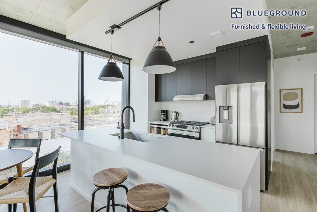 Show up and start living from day one in Chicago with this cozy two bedroom Blueground apartment. You’ll love coming home to this thoughtfully furnished, beautifully designed, and fully equipped Fulton Market District home. (ID #CHI1096) The advertised rate of $6,400/month is the lowest available price, based on a 8 month(s) and 6 day(s) stay with a move-in date of May 2, 2030. If you’re looking for a 1-year stay, the rate is $6,610/month. Rates vary depending on the duration of stay, season, and other parameters. For exact pricing and additional pricing components, please visit our website and enter your desired move-in and move-out dates. The rate is applicable when billed upfront; it can be higher if billed in multiple payments. Brokers are welcome to reach out. Were you looking for an unfurnished lease? Try Blueground instead and upgrade from unfurnished to furnished living: - Furnished at rates comparable to unfurnished - No setup or furniture costs - save thousands - Move-in ready - save time, just bring your suitcase Designed with you in mind As with any Blueground apartment, you’ll find a thoughtfully designed space complete with beautiful furniture and a fully equipped kitchen in this two bedroom property. And, thanks to our superior quality mattresses, fully stocked linens, and towels, you can relax knowing you’ll always feel comfortably at home. When you’re ready for some fun, you can take in the Chicago vibes or bring the entertainment to you with the premium wireless speaker or smart TV. This apartment also offers in-apartment laundry. Sleeping arrangements King Bed, 70.8in/180cm Queen Bed, 63in/160cm Amenities Building amenities unique to this two bedroom apartment include an on-site: - BBQ Area - Dryer - Elevator - Swimming pool - Washing machine - Lounge Arrival and ongoing support The entire apartment is yours to enjoy! Throughout your stay, you’ll have access to our Client Experience team through the Blueground App. You can schedule additional cleanings, submit maintenance requests, and view our neighborhood recommendations with just a few taps. We’ll share all details upon confirmation of your stay. Other things to note Building amenities may have an extra cost. This Blueground apartment has flexible lease options, allowing you to book it for one month, a year, or more. We take great pride in ensuring every photo displayed is shot in our own units with our actual furnishings. That said, we regularly refresh our decor and furniture arrangement, which may differ from what’s pictured. Also note - This apartment is located near a railway, so expect to hear moderate noise when trains pass - This is a guarded building equipped with a doorman/concierge at all times [SI]