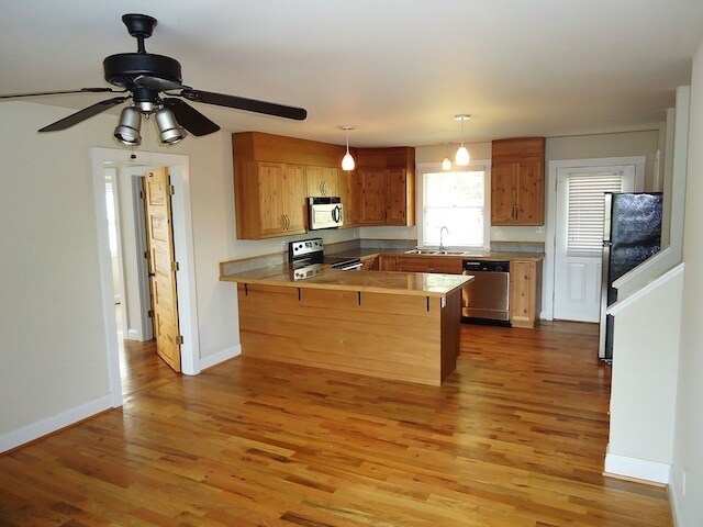 Hip in-town three bedroom three bath plus bonus room and study nook in popular Chicopee-Dudley neighborhood. Recently constructed home full of modern amenities including stainless appliances, wide board hardwood floors, pine doors, tile baths, walk in closets, and more. Outdoor living space includes exceptional landscaping, backyard with large patio and fireplace as well as a rocking chair front porch looking out onto downtown Athens. Fenced side yard with covered area for outdoor dogs. Convenience of being able to walk to downtown and campus with benefit of quiet neighborhood. Pre-leasing for August 2026!