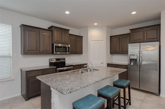 Exceptionally well maintained 2017 built home in South Denton & zoned to Guyer! 1 story, 3 beds - 2 baths with flex space that could be used as an add'l dining, living or open study! Gorgeous front covered patio! Lg entry way that flows into a very spacious kitchen area with upgraded subway tile backsplash, granite counters & large island! Option to change to gas stove! Open & spacious living area. Lg tile flooring expanding from entry way into the kitchen, breakfast nook and hallways! Sleek updated door hardware on gorgeous paneled interior doors. Large garden tub & separate tiled shower with lovely mosaic tile accents! Extra long driveway! Spacious backyard with sizeable covered patio! Mins from shops & eats! Walking distance to elementary school.