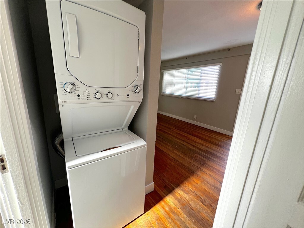 Apartment Complex in Historic East Fremont District. Minutes from Container Park, Maryland Pkwy. Transportation. Quaint & Charming enclave near the excitement of Downtown Las Vegas. Minutes from Las Vegas Blvd. Single story building with center courtyard. 2 Bedroom 1 Bathroom apartment Unit has wood like flooring throughout. New Windows, New Refrigerator, New Stove and Microwave Laundry in the unit. Gated entry with one assigned covered parking. Cable TV READY. Water, Sewer, Trash and Landscaping included in the rent. Unit is 525 Sq Ft.