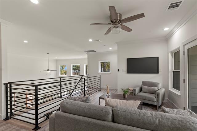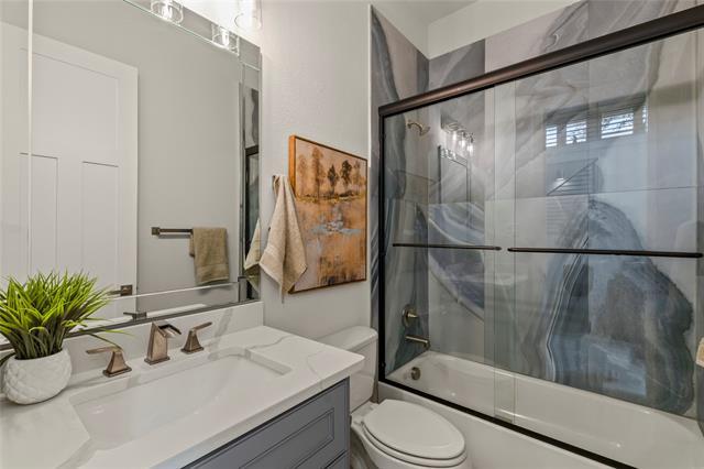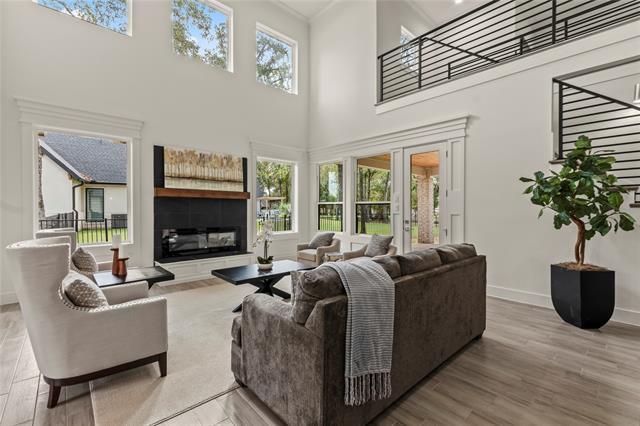 Golf course home overlooking the #15 tee box in prestigious Pinnacle Country Club with 18 hole golf course, restaurant, pool, pickle ball and tennis courts and fitness center. Home is as gorgeous as the view with spacious open concept living with soaring ceilings, big windows, wood look tile floor and linear electric fireplace. In addition to island seating around the kitchen there is plenty of room for a large dining table. Kitchen boasts custom cabinets, quartz countertops and stainless steel appliances. Primary bedroom with golf course views and stunning bath with soaking tub, large walk in shower, separate vanities and walk in closet with built ins. Bonus room upstairs offers additional living space or would make a great game room and opens to a balcony with sweeping golf course views. With three more bedrooms and 2 baths this home this home accommodates family or guests comfortably. Main floor office with closet could be used as a 5th bedroom. A newly installed wrought iron fence enhances the backyard's charm and architectural appeal. Guard gated community. Buyer transfer fee of .002% at closing. Seller is a licensed real estate agent in Texas.