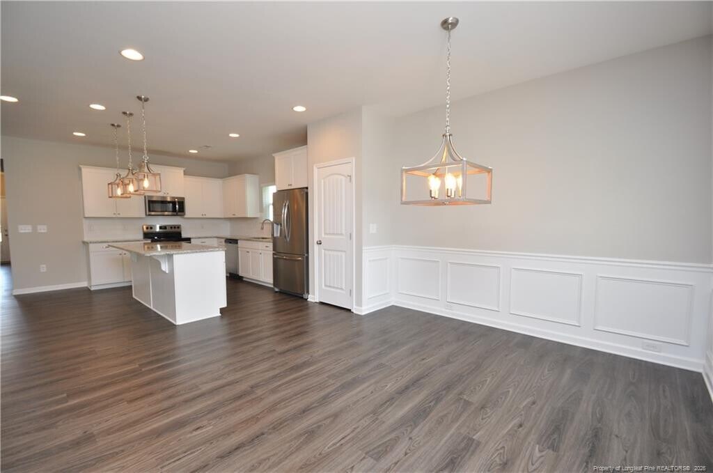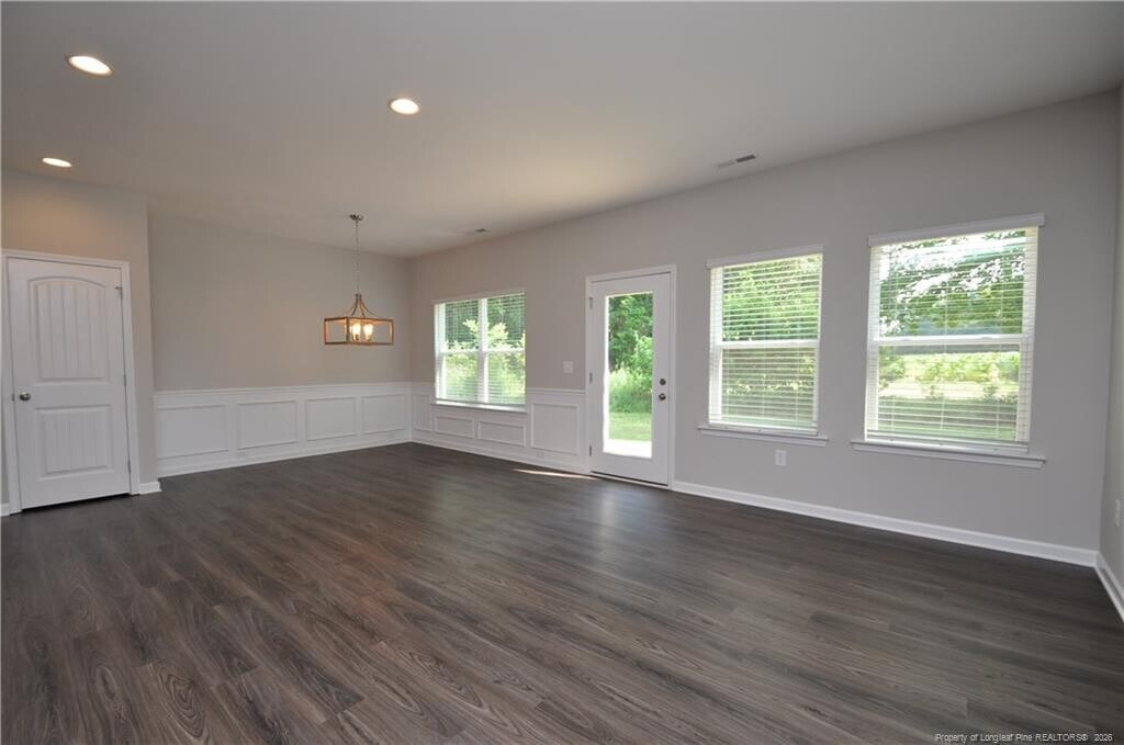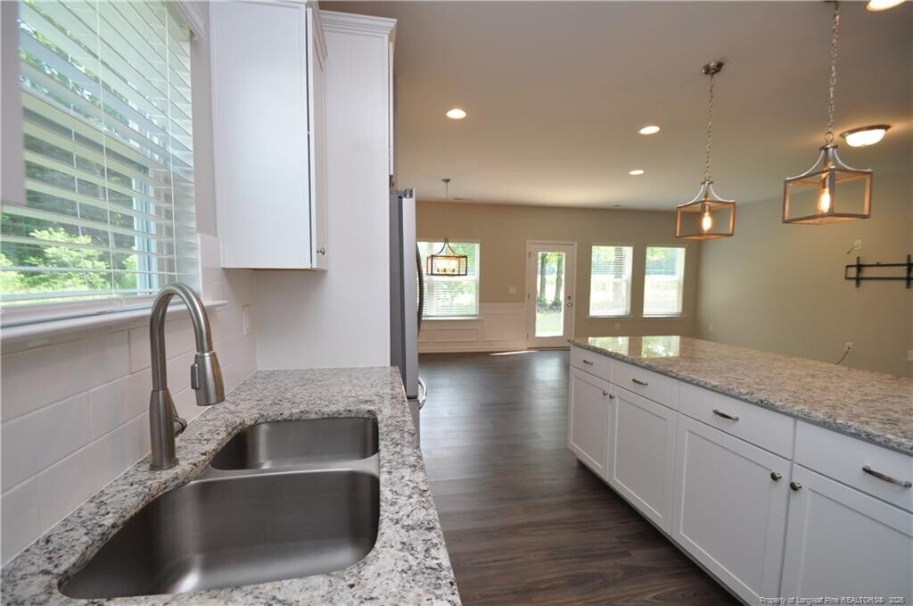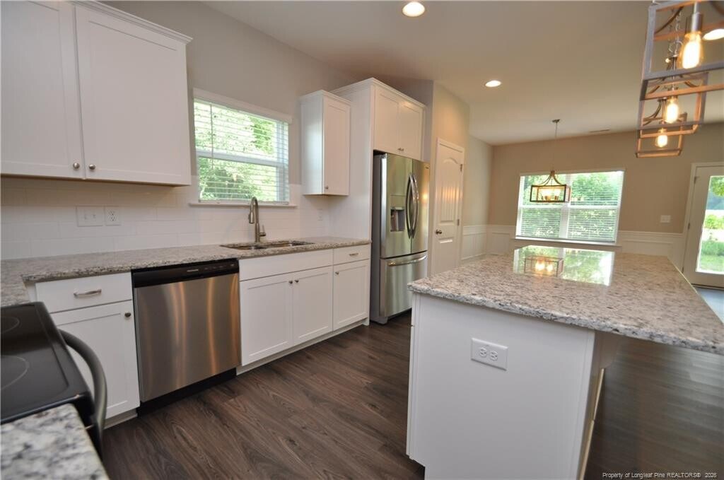 Words cannot do this home justice; it must be seen to be believed! 225 Theys Mill Way is an absolutely dazzling and immaculate ranch style home located in a quiet neighborhood less than 5 minutes from vibrant downtown Fuquay Varina! Positioned on an extra large lot and simply exuding curb appeal; its allure can't be topped. Step inside through the covered front porch and you're greeted by gorgeous and durable luxury plank floors throughout the living areas. 9' ceilings and an abundance of natural light serve to accentuate this home's open floorplan and beautiful features. Down the hallway you'll find lovely living spaces anchored around a stunning kitchen that features sleek stainless appliances, staggered 42 cabinetry, recessed lighting, a pantry, granite counters and a gorgeous subway tile back splash. The over-sized island is topped by acres of granite and includes a breakfast bar as well as custom triple pendants that cast a warm light and simply look amazing in the evening. Adjacent to the kitchen is a dining area with multiple windows as well as a family room with a flat panel mount already in place. This home possesses a desirable "split bedroom" plan with the primary suite on one side of the home and the secondary bedrooms on the other. This offers maximum privacy and noise isolation for light sleepers. The primary bedroom is fit for royalty and showcases a tray ceiling, flat panel TV mount, double windows and a spectacular en-suite bathroom with custom marble tile floors, an extended granite-topped vanity with dual sinks, a private water closet, a tiled, walk-in shower and an expansive closet. Head back down the hallway and you'll find the laundry closet (with a high efficiency washer and dryer for resident's use) as well as bedrooms #2 and #3; each spacious and with easy access to a full hall bathroom, also with marble tile flooring! Before leaving be sure to visit the fully finished garage with epoxy floors as well as the lovely backyard with lush grass and a patio too!"