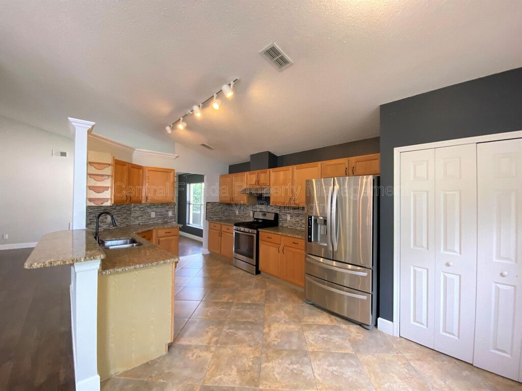 Welcome home! This 3-bedroom, 2-bath home is located in the desirable Eastwood community and features dark hardwood floors, ceramic tile in the kitchen, and a spacious living and dining area with a double-sided fireplace. The kitchen offers stainless steel appliances, granite countertops, and ample storage. The primary suite includes dual sinks, a walk-in shower, and a soaking tub. Washer and dryer included. Enjoy a fenced backyard overlooking a pond. Community amenities include a pool and tennis, volleyball, and basketball courts. Cable and internet included. Conveniently located near Waterford Lakes with easy access to 417 and 408. Renters insurance required. By submitting your information on this page you consent to being contacted by the Property Manager and RentEngine via SMS, phone, or email.