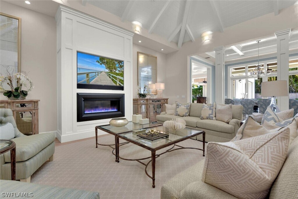 Welcome to your private coastal retreat in the heart of the Moorings—a sun-filled,single-story luxury home designed for effortless relaxation and elevated entertaining. Set on a beautifully landscaped corner lot,this spacious residence blends refined coastal elegance with the comfort of a true vacation escape. Step inside to a light-filled interior where relaxed coastal elegance meets thoughtful design. The open-concept living space features soaring ceilings and an inviting,breezy atmosphere that immediately sets the tone for a true vacation escape. At the heart of the home,the gourmet kitchen serves as a stunning centerpiece,complete with high-end appliances,an expansive island,and a beautifully appointed butler’s pantry that enhances both function and sophistication—ideal for hosting,gathering,and effortless entertaining. The kitchen flows seamlessly into the living and dining areas,creating a welcoming space for slow mornings,casual meals,and sunset cocktails. The outdoor living space is the true showpiece of the home. Surrounded by lush tropical landscaping,the private backyard offers a resort-style heated pool and spa,multiple lounge and seating areas,and a fully equipped summer kitchen—perfect for grilling,dining,and relaxing in the warm coastal breeze. Whether you’re floating in the pool,enjoying an afternoon nap in the shade,or gathering for an evening under the stars,this serene outdoor oasis sets the stage for unforgettable vacation moments. The home also features two half baths,including a convenient pool bath—ideal for seamless indoor-outdoor living and entertaining. The home comfortably accommodates larger groups with four luxurious king bedrooms plus a den with a queen pull-out sofa. The primary suite features a king bed and a spa-inspired bathroom with a walk-in shower and separate soaking tub,creating a peaceful private retreat. The second and third bedrooms each offer king beds with walk-in showers,while the fourth bedroom includes a king bed with a shower/tub combination. The den provides additional sleeping space with a queen-size pull-out,ideal for children or extra guests. Beautifully furnished and thoughtfully appointed with elegant coastal décor,comfortable seating,and inviting spaces throughout,the home is designed to help you unwind and feel instantly at home. Ideally located in the Moorings,residents and guests are just minutes from Naples’ renowned beaches,as well as close to the area’s finest dining,boutique shopping,and beloved coastal destinations. This is refined coastal living at its best—luxurious,private,and perfectly positioned for an unforgettable Naples getaway. ***Listed rate applies to the 2026 season. The 2027 seasonal rate will be $47,000.***