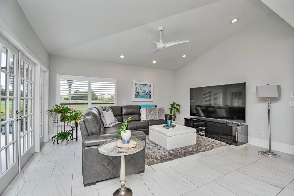 Just listed in the highly desirable, non-mandatory golf community of Boca Pointe! This one-of-a-kind four-bedroom, four-bathroom home in Esplanada Offers over 4000SF,completely renovated inside and out and offers breathtaking, expansive golf course views that are truly unmatched. As you enter, you're welcomed by soaring ceilings and a grand open layout, with formal living and dining spaces that set the tone for elegance and comfort. The home features one spacious guest bedroom and full bath on the first floor, in addition to a luxurious primary suite with bamboo flooring, two walk-in closets, a spa-inspired bathroom with a freestanding soaking tub, frameless glass shower, quartz double vanities, and a private water closet. Porcelain tile is laid in a beautiful staggered pattern