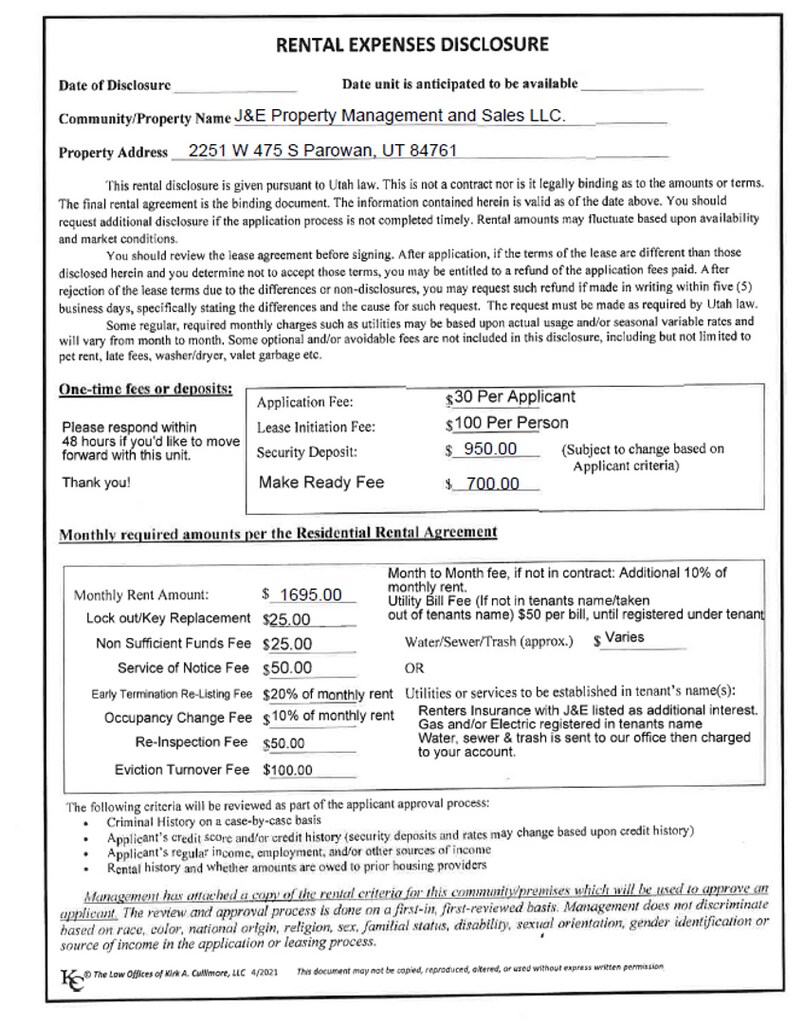 | Parowan 4 Bedroom Apartments | $979 | $350 | $6,936 |