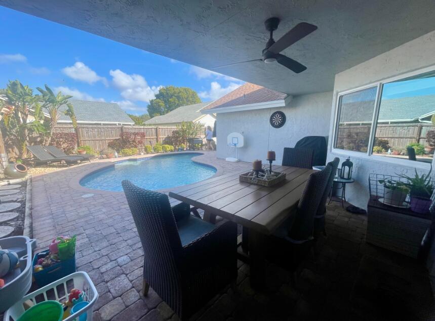 Pool home in Boca Raton! Single story, open concept, spacious and updated. This single story home is in a great family oriented community. Hurricane impact windows and sliders, updated kitchen, beautiful cabinets (lots of storage), stainless steel appliances. Home also features vaulted ceilings, an outdoor terrace with full size private pool! Plenty of room in the yard for children and pets. Great sought after Boca Winds neighborhood, A-rated school district. Minutes to South County Regional, with walking/bike trails, recreational activities, public golf, dog park, kids water park, amphitheater and more! This home is close to shopping, movie theater and plenty of restaurants. New AC! Extra fridge in the 2 car garage. A Must See!