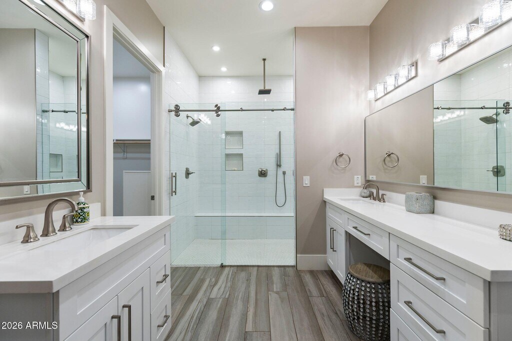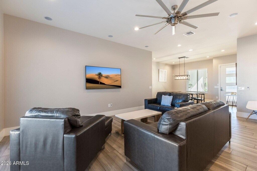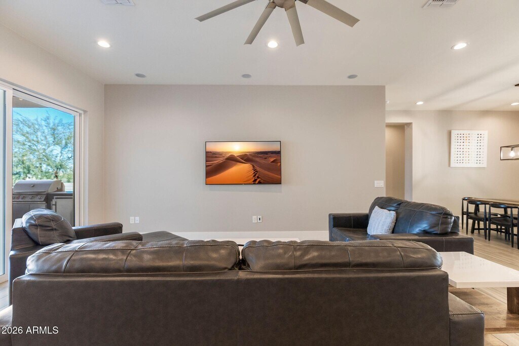 Wake up to panoramic mountain views,sparkling city lights,and direct access to South Mountain's renowned hiking and biking trailsjust steps from your front door. Custom-built in 2019,this stunning ProLux Home delivers modern desert luxury in one of Phoenix's most sought-after outdoor lifestyle locations. Designed with both style and function in mind,the open-concept layout features soaring 12-foot ceilings,a sleek modern aesthetic,smart-home technology,and surround sound throughout the home. The chef's kitchen anchors the space with waterfall quartz countertops,high-end cabinetry,a walk-in pantry,under-cabinet lighting,a WiFi-enabled refrigerator,and double WiFi ovens. A generous breakfast bar provides additional seating,while the kitchen flows seamlessly into the expansive great room ideal for effortless entertaining. A separate dining room offers a more formal space for hosting gatherings and special occasions. The spacious primary suite is privately positioned within the split-bedroom floor plan,offering a serene retreat with a slider to the patio and a spa-inspired ensuite featuring a custom tiled rain shower with multiple shower heads,his-and-her vanities with an extended makeup vanity,and a generous walk-in closet. Three additional bedrooms are thoughtfully located to provide privacy and flexibility for guests or family,with all bathrooms featuring beautifully designed custom tiled showers that elevate the home's luxury feel. The backyard is a true showstopper. Enjoy breathtaking downtown city-light views from a spacious,beautifully landscaped yard designed for both relaxation and entertaining. The stunning heated pool invites year-round enjoyment,while the expansive covered patio creates the perfect setting for outdoor dining,lounging,and hosting guests. Complete with a fully equipped outdoor kitchen featuring a BBQ,refrigerator,and sink this private outdoor retreat delivers a true resort-style experience framed by desert skies and city lights. Additional highlights include custom cabinetry in closets and garage,EV charging station,Nest WiFi thermostats,a whole-home triple reverse osmosis system,alarm system,fully fenced yard with electric gate,and thoughtful design details throughout. Built with quality and efficiency in mind,the home features 2x6 construction,an all-electric design,induction cooktop,and energy-efficient systems. All furniture included in sale if buyer desires. Conveniently located near South Mountain hiking trails,restaurants,major freeways,and just 7 miles from Sky Harbor Airport,this home perfectly blends luxury living,outdoor adventure,and modern convenience. This is more than a home it's a resort-style lifestyle with unmatched mountain access,city-light views,and exceptional outdoor living.