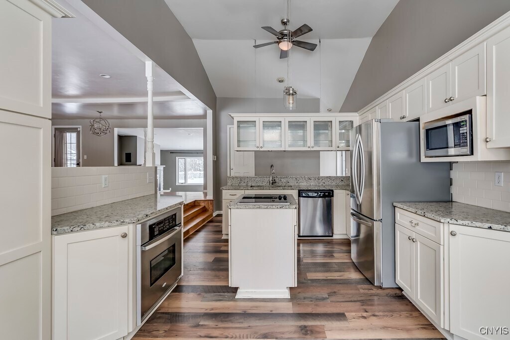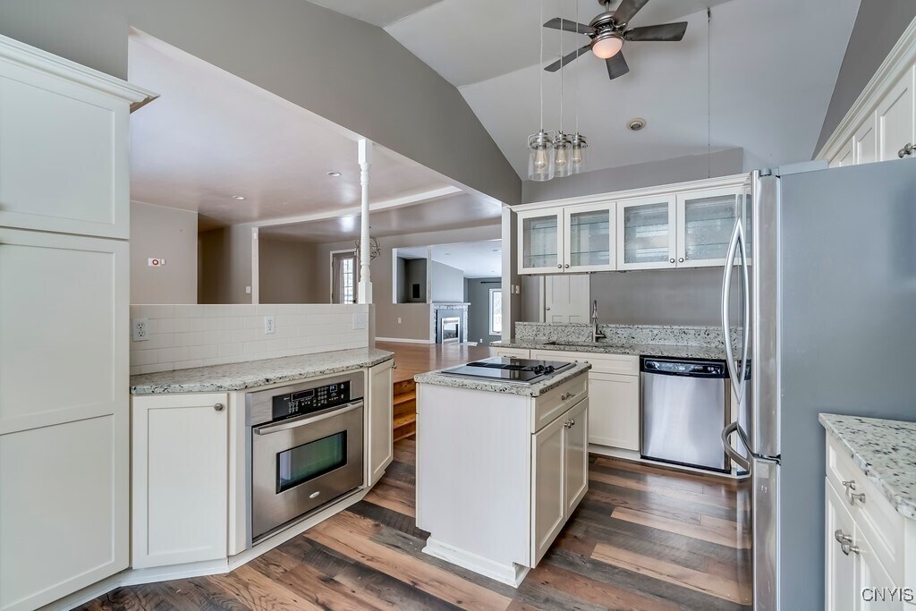 AMAZING home now available just outside City of Watertown. This roughly 2800 square foot home is less than a 10 minute drive to shopping,restaurants,and 2 of Fort Drum Gates. The spacious layout here separates the three,1st floor bedrooms from the Bright Living Room and Dining area. There is a sunken den with gas fireplace,Gorgeous kitchen with modern appliances,Plenty of cupboards,and additional breakfast nook. Downstairs you'll find nearly equal space with a one of a kind finished basement. Renovated for use as an entertaining room with built in bar,this area is big enough for Rec Room,Exercise Space,or home school. There is also a beautifully enclosed office room that holds many possibilities. Large,Fully Fenced backyard with deck and side patio too. Don't worry about storage for cars or toys: this garage measures approximately 1400 square feet and has 3 doors! Home has public water & sewer as well as efficient natural gas heat. If you love your central A/C,we've got that too. Credit & Background check needed when application is reviewed. Call or text a Realtor with any questions. ((Also Listed For Sale: MLS: S1659361))