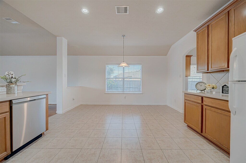 Welcome to this stunning 1 story home in the lovely Waterstone neighborhood. This light & bright home features an open floor plan w/ raised ceilings in the family room,wood floors & elegant arched doorways,with a huge kitchen open to the family room. There is also another extra sunroom/enclosed porch with extra storage added off the family room- perfect for enjoying your morning coffee or relaxing after a long day. The HUGE kitchen boasts 42'' cabinets,quartz counters,recently installed stainless microwave,dishwasher & range,w/ceramic tile flooring in the formal dining room,& all wet areas. The living area is enhanced w/beautiful wood flooring that contrasts with the pristine white walls. NEW washer and dryer have been added for your convenience,& the refrigerator is also included. The back yard is huge and ready for activities or gardening! This home is in a great location in the middle of a cul-de-sac with Excellent KISD Schools. Don't miss this! MLS# 39390495