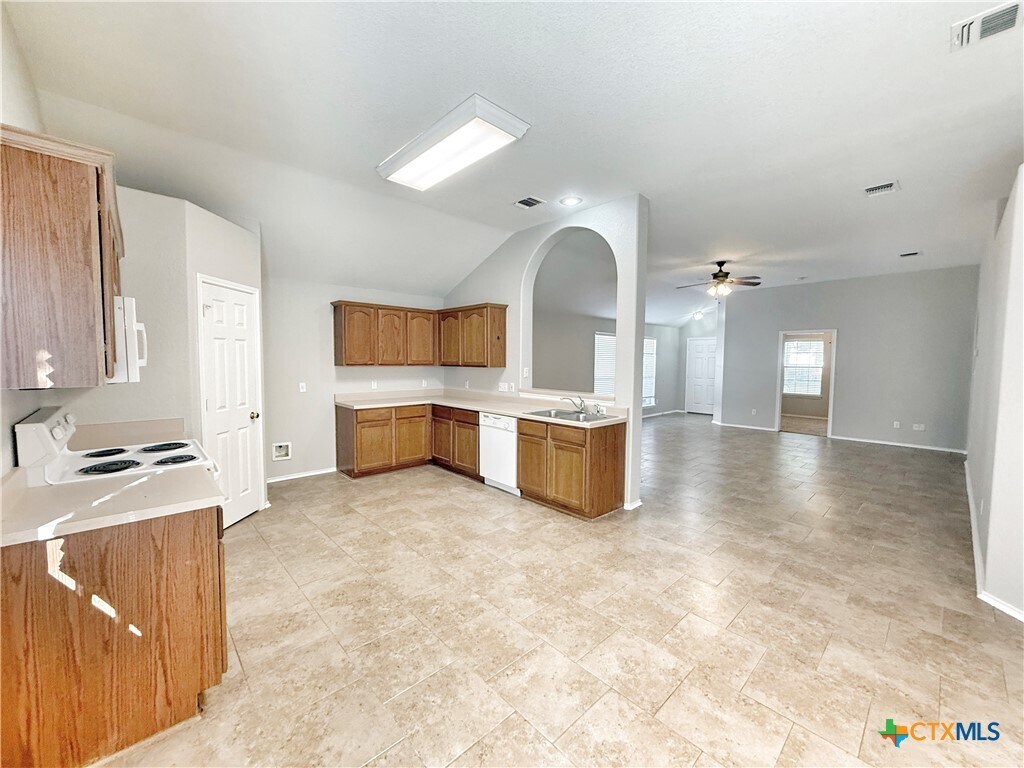 This inviting single-story home offers 4 bedrooms,2 full baths,and a spacious open layout-perfect for comfortable living and entertaining. The entire interior was freshly painted in November 2025,giving the home a clean,modern feel from the moment you walk in. Step inside to find durable tile flooring throughout the living room,kitchen,and hallway,creating easy maintenance and a cohesive flow. The generous living area features a cozy corner fireplace,ideal for relaxing evenings at home. The large open kitchen includes an eat-in dining space and plenty of cabinet storage. The primary suite is privately located just off the kitchen and features brand-new carpet (Nov 2025),a full en-suite bath with updated flooring,a tub/shower combo,private toilet room,and spacious walk-in closet. Bedrooms 2,3,and 4 are located on the opposite side of the home,each offering great size,ceiling fans,and versatility for family,guests,or office space. Enjoy outdoor living in the fenced backyard with a patio slab-perfect for grilling or relaxing. The yard does have a slight slope but is simple to maintain. Located in the desirable North Park Meadow subdivision,this home is just minutes from IH-35,within walking distance to Fischer Park,and a short drive to downtown New Braunfels,H-E-B,shopping,dining,and local attractions.
