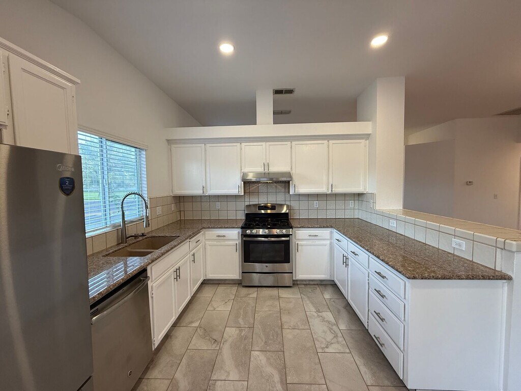 Well-maintained single-story home located in desirable Riverbank! Be sure to check out the video tour on our website or YouTube channel. This home features three bedrooms, two full bathrooms and approximately 1448 square feet. Enter into an open living space with vaulted ceilings. Kitchen is spacious with bright white cabinets, granite slab counters and stainless-steel appliances. Eat in dining area with tiled floors opens to a second family room space. Hallway has a large linen closet as well as a laundry nook that holds a full-size washer and dryer. Hallway bathroom has tiled floors and shower over tub. The primary suite has vaulted ceilings, ceiling fan, double sinks, shower stall and walk in closet! Teh secondary bedrooms also have ceiling fans. This home is equipped with solar panels to help keep energy costs low. Relax under the oversized covered patio equipped with dual fans. With dedicated side access, there is ample room to accommodate an RV or boat. Oversized three-car garage, featuring two garage doors and sleek epoxy flooring. You are just 200 feet away from Safreno Park and a short two-minute drive from the brand-new Costco, HomeGoods, TJ Maxx, Raising Canes and soon to arrive Trader Joe's. Enjoy being minutes from the best shopping and dining Riverbank has to offer. Tenant is responsible for utilities and maintaining the yard. Pets are subject to approval with modified terms. $2495 monthly rent with a six month lease. $2495 security deposit. $50 non-refundable application fee per adult. Please visit our website at or call for more details. Five Star Property Management Lic# 01 Wylie dr Modesto, CA 95355 office fax info@