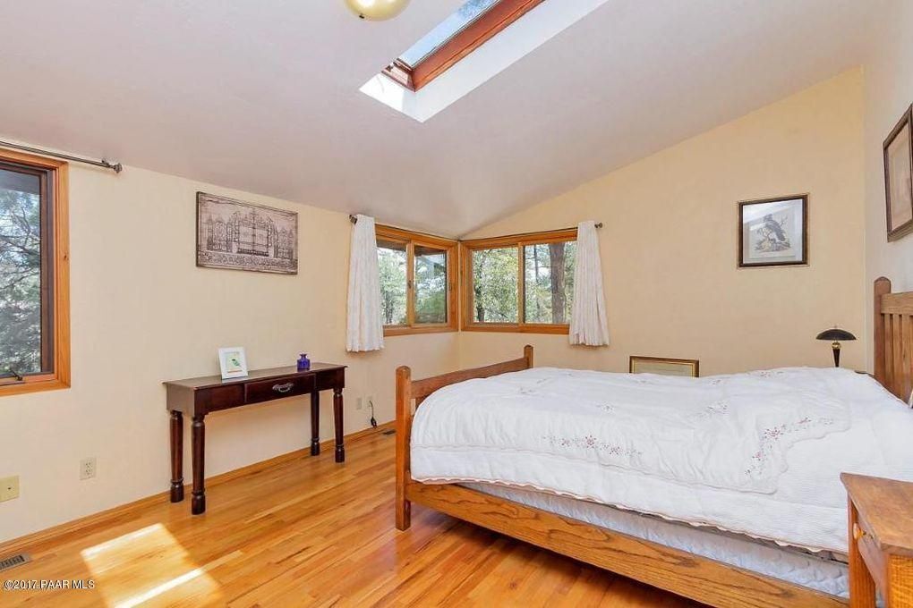 Custom built home tucked at the base of Thumb Butte on a full acre, home is getting fresh interior paint and NEW PHOTOS coming soon. This single level cedar home offers 2 bedrooms and 2 full baths, warm hardwood floors, large windows, and three spacious decks to take in the boulders and tall pines that surround the property. Inside, you will find wood beam ceilings with skylights, a wood burning stove, and an open floor plan designed for comfort and flexibility. Additional spaces include a den or office that can function as a third bedroom, a loft, mud room or atrium entry, kitchen island, and a bonus room above the one car garage. There is also a small basement for extra storage. Enjoy peaceful living just 10 minutes from the Prescott Courthouse Plaza. No smoking. Pets are negotiable. Tenant pays all utilities.