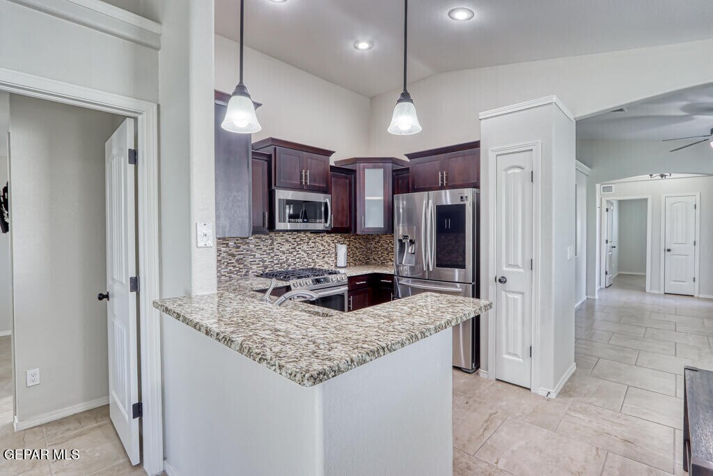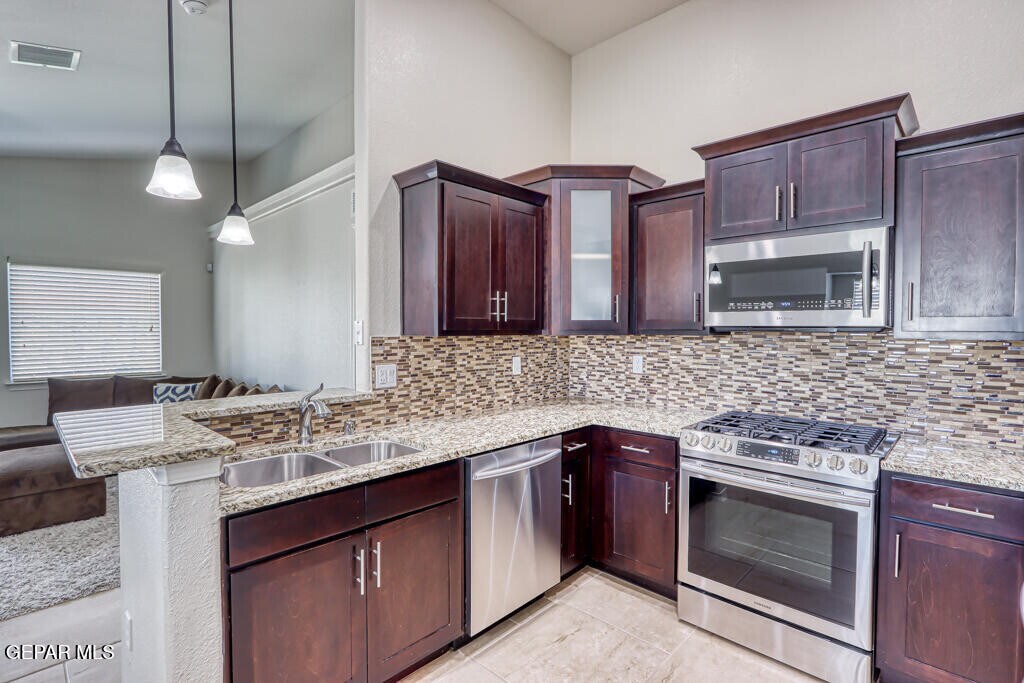 This home offers 4 bedroom,2 full baths. Single level home with an open floor,kitchen with all stainless steel appliances granite counter and breakfast bar. This home has two living areas also. A good sized dining area. Master Bath with double vanity,granite counter and a spacious garden tub. The backyard is amazing featuring a custom built pergola,artificial turf and a storage building. This home is a must see and within close proximity to eateries,shopping and Ft. Bliss. Small dogs under 20 lbs allowed,Home is available to move in February 10,2025. Home comes equipped with a water softener system.