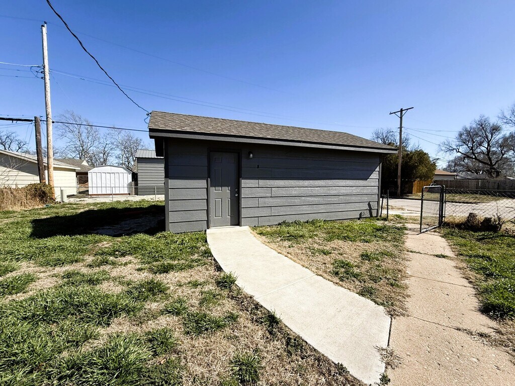 Property Id: 2426303 2256 S. Bonn Wichita, KS 67213 Rent: $ 995.00 Deposit: $ 995.00 Pets: small only Utilities: Resident shall pay all utilities including trash, lawn and pest control. Appliances: Refrigerator, range , dishwasher Bedrooms: 3? ? Baths: 1 Heat and air: Central W/D: Hook-ups Flooring: Luxury Vinyl Plank Sq Ft: 1,000 Parking: 1 car detached garage Availability: Now Term: 1 Year Internal features: 3 bedroom, 1 bathroom, luxury vinyl plank flooring. External features: Fenced in yard with new 1 car detached garage.