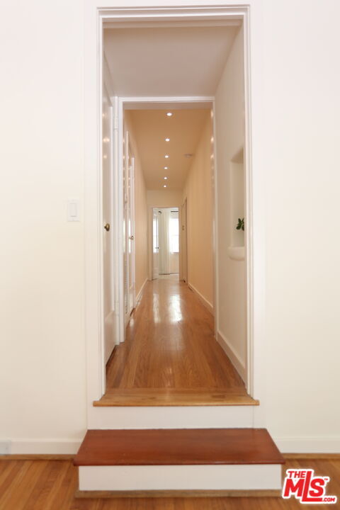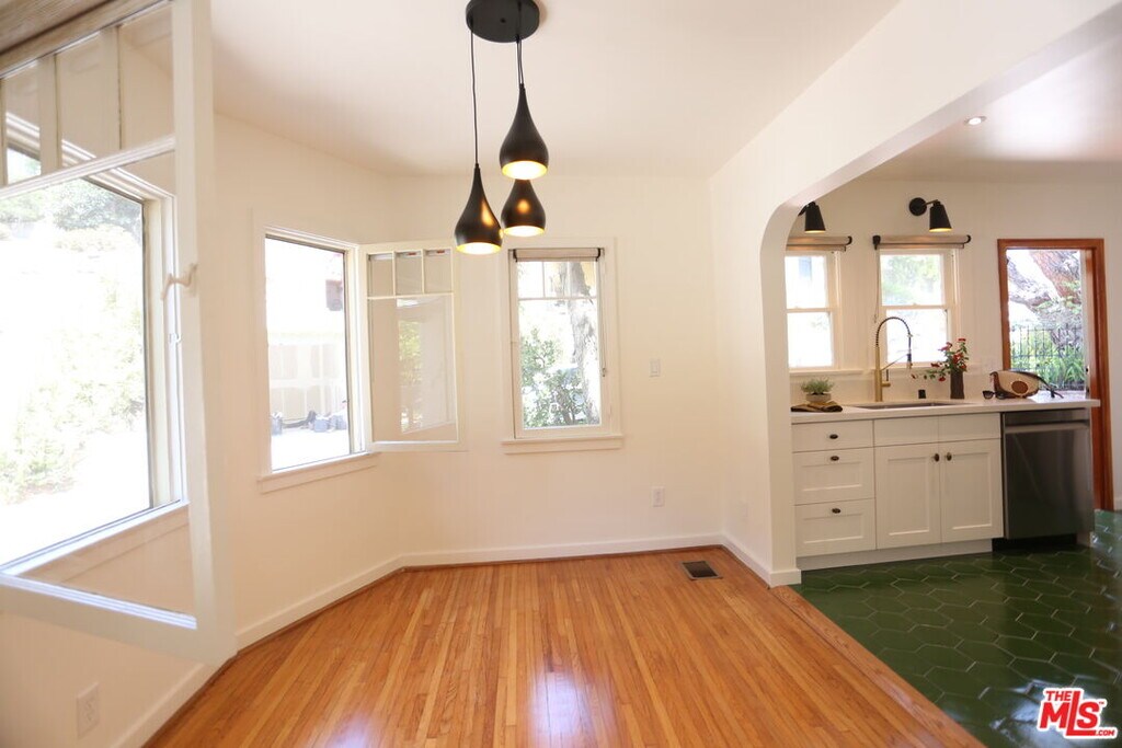 Silver Lake 1929 Spanish Duplex . This remodeled lower unit offers many period details and some great new finishes and upgrades. The sunken living room features a huge arched window, unique sconces and charming original french windows. The fully remodeled kitchen includes stone counters, newer upgraded appliances (dishwasher, gas range with custom hood, and refrigerator), and thick oak floating shelves. The original narrow plank oak floors have been refinished after being covered for 30+ years. Enjoy your own LG washer dryer in closet with generous linen storage. 2nd bedroom has a private deck overlooking an inviting patio space below. Smart features include central AC and heat, nest thermostat, custom window coverings on all windows, and off-street parking for one car in the driveway. Great location near Whole Foods 365 Market, Silver Lake Wine, The Red Lion and Ginger Grass. Come to one of the open houses on Saturday 11/15 between 1-3 pm or Sunday 11/16 between 1-3pm MLS# 25618511