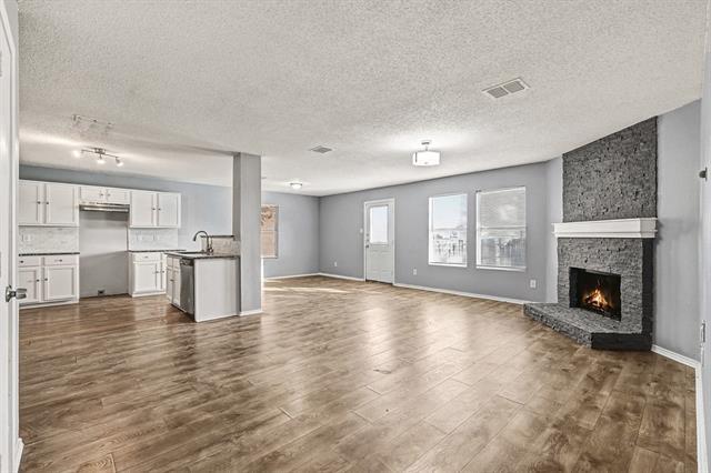 This well-proportioned 5-bedroom, 3-bath home presents a balanced blend of scale, comfort, and thoughtful updates. A classic brick exterior sets a polished tone, while inside, generous shared spaces create a composed setting for both daily routines and hosting. The main living area connects naturally to the kitchen and dining space, allowing light to travel easily throughout. Flooring with a warm wood-look finish grounds the common areas, and the living room centers around a fireplace that adds visual character. In the kitchen, ample cabinetry and expansive counters provide room to prepare and serve with confidence. A central island with an integrated sink and dishwasher adds convenience, while a walk-in pantry offers valuable storage. All five bedrooms are fully carpeted and equipped with ceiling fans, contributing to a comfortable private retreat across the home. Three bathrooms are distributed to support both shared and private use. Situated in Little Elm, this home enjoys proximity to everyday conveniences and outdoor amenities. Nearby options include H-E-B and Kroger for groceries, shopping and dining along Eldorado Parkway, and recreation at Little Elm Park and Lewisville Lake. The area also provides access to trails, playgrounds, and The Cove water park, creating a well-rounded setting for daily life. *Fireplace is for decorative use only and cannot be used without consent from Belong.