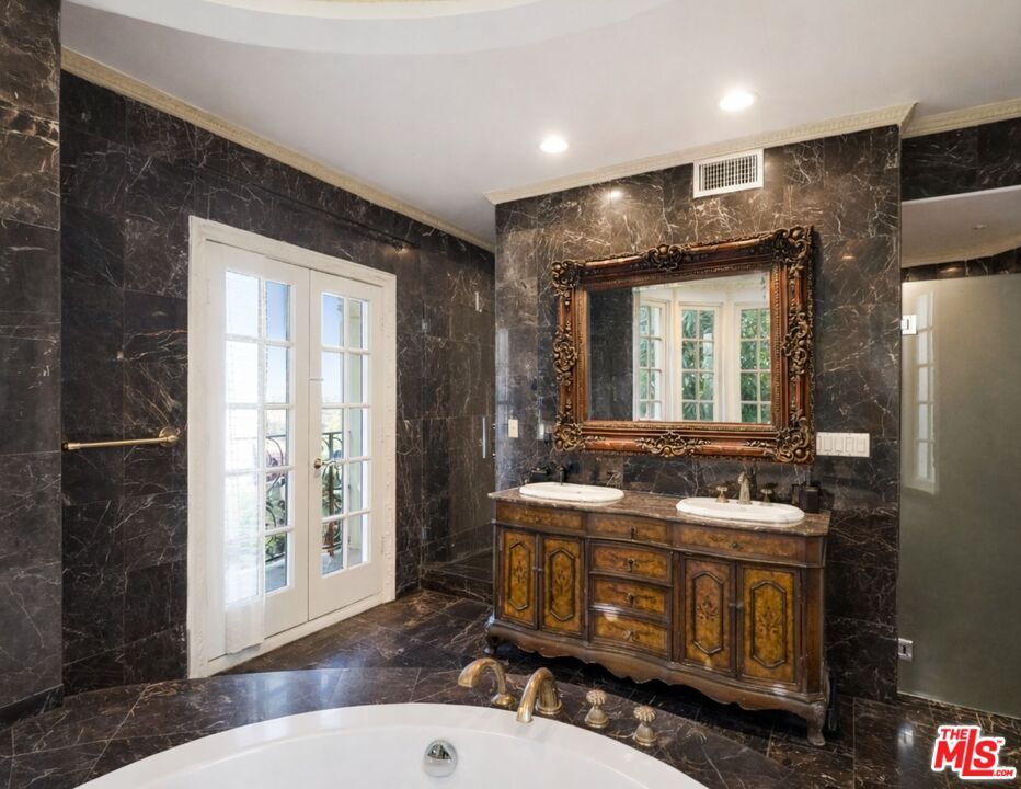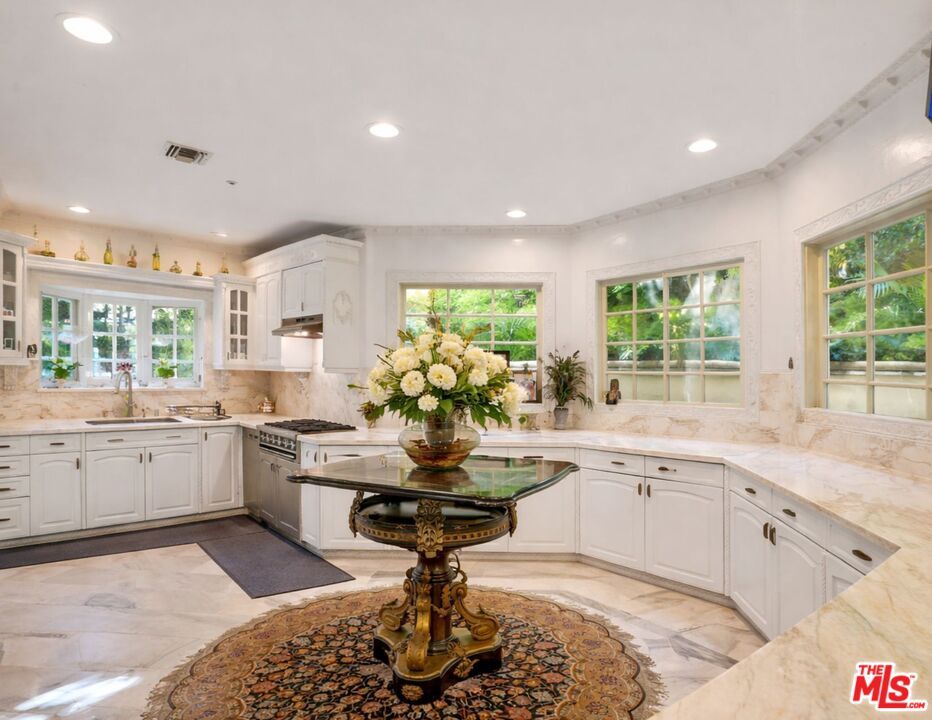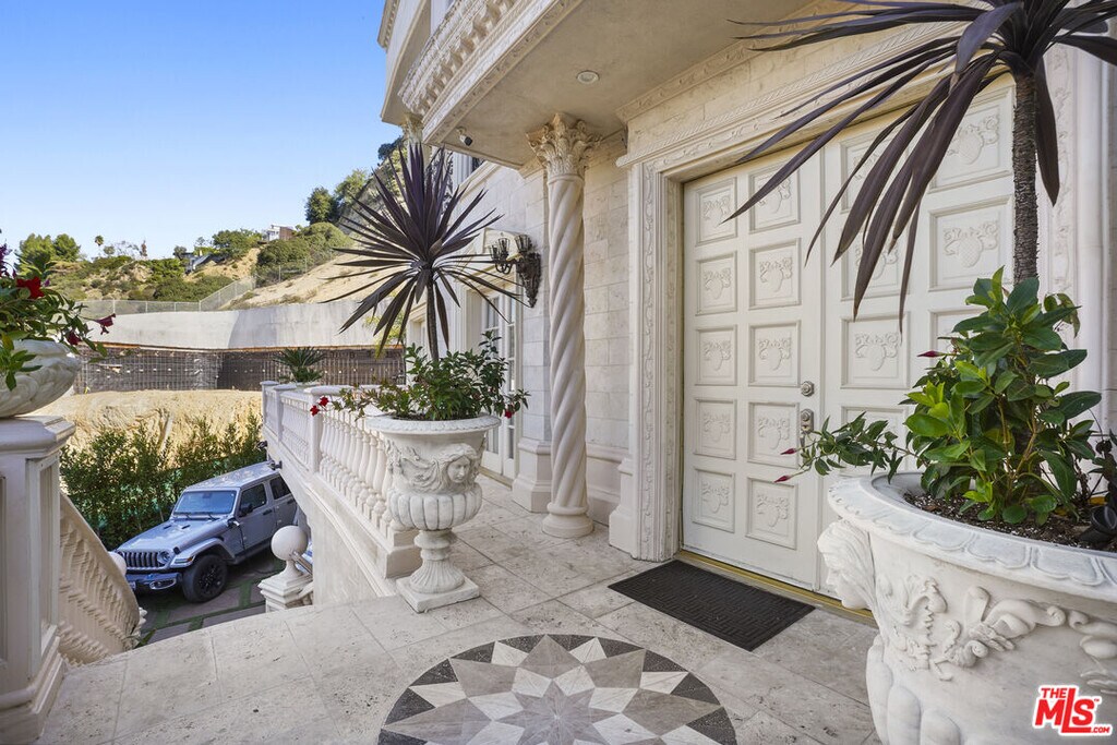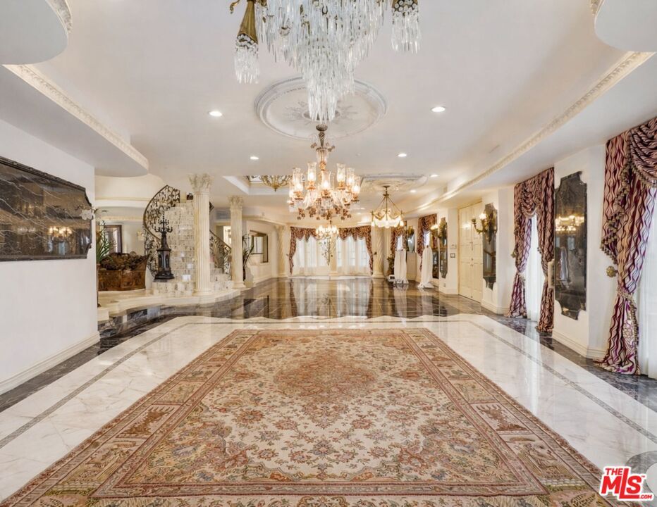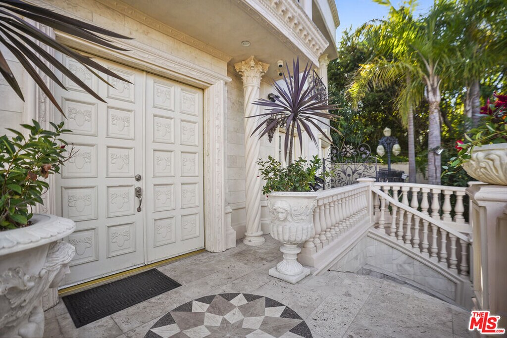 Welcome to The Villa Royale, a one-of-a-kind custom-built estate in the heart of Beverly Hills 90210, where timeless European elegance meets grand-scale luxury living. From the moment you enter, you're greeted by an impressive foyer showcasing exquisite marble flooring, dramatic columns, intricate ceiling detailing, and statement chandeliers that immediately set the tone for the level of craftsmanship throughout. Designed for both everyday comfort and high-end entertaining, the expansive interiors flow seamlessly across multiple living spaces, all finished with refined materials and architectural detail. The gourmet kitchen is anchored by marble countertops, custom cabinetry, and a spacious layout that includes a breakfast area and built-in stovetop, offering both functionality and sophistication. The main residence features four generously sized bedrooms and five bathrooms, including a luxurious primary suite designed as a private retreat. The master showcases a grand spa-style bathroom complete with an oversized soaking bathtub, creating a true resort-like experience within your own home. Step outside into a resort-caliber backyard that defines this estate. Surrounded by lush landscaping and mature palms, the grounds feature a large pool, private barbecue area, and a striking 30-foot waterfall that becomes the focal point of the outdoor space. Multiple entertaining zones are thoughtfully integrated throughout, creating a true indoor-outdoor lifestyle. A standout feature of the property is the elevated, private gazebo deck, accessed by a staircase that leads you above the grounds. From here, you capture sweeping panoramic views overlooking the entire city, an ideal setting for entertaining, relaxing, or enjoying sunset views over Beverly Hills. Completing the estate is a separate guest house with its own bedroom, bathroom, and kitchen, offering privacy and flexibility for visitors or extended stays. Every element of Villa Royale was built with intention, care, and attention to detail, delivering a rare opportunity to own a truly distinctive Beverly Hills estate. Offered furnished or unfurnished. Some photos have been virtually staged or digitally edited, including furniture removal. FOR LEASE $24,000/ Month FOR SALE $10,800,000 MLS# 26652587