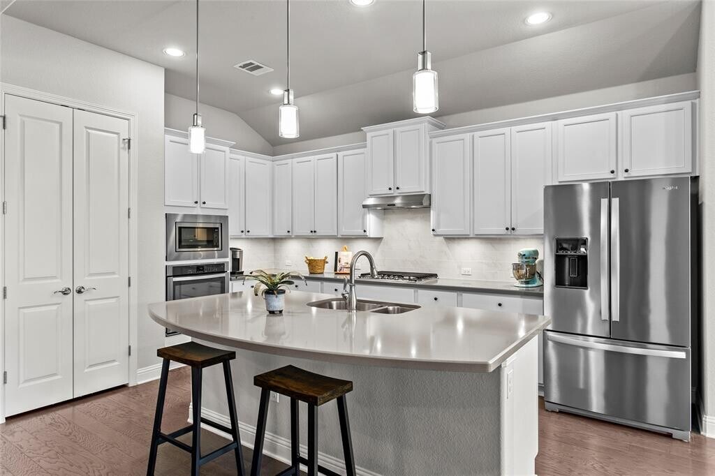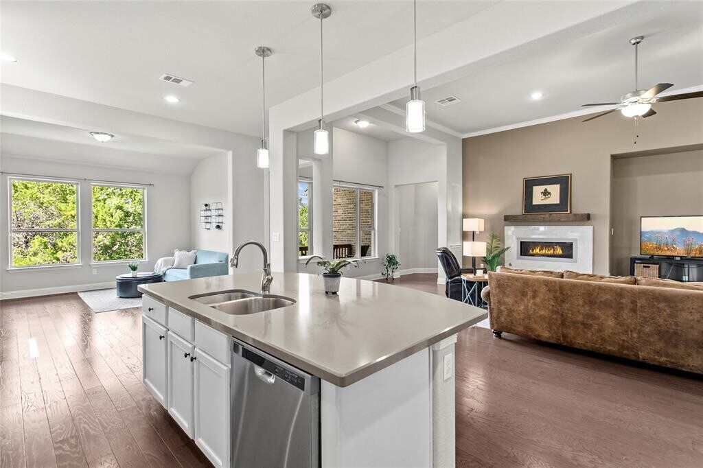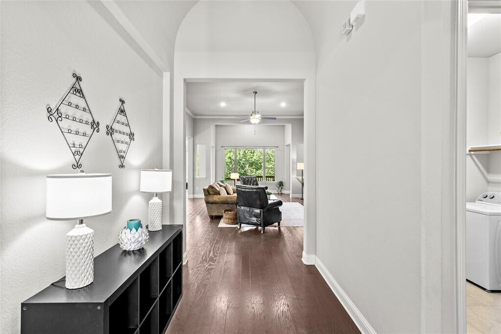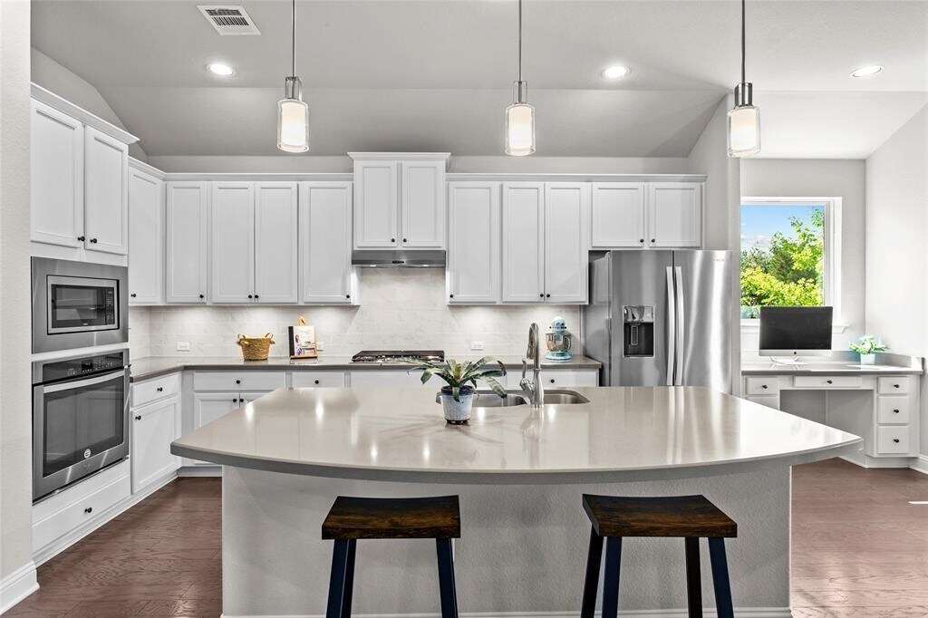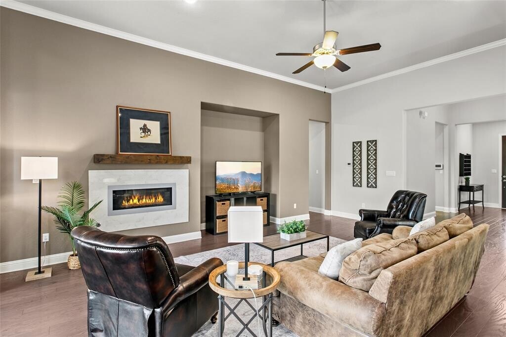 This thoughtfully updated single-story home combines comfort, function, and style in a layout that’s easy to love. The open-concept kitchen features crisp white cabinetry, a center island with breakfast bar seating, and a built-in desk area, seamlessly flowing into the main living area. Ample windows bring in natural light and highlight the private greenbelt. Just off the kitchen, a bonus room offers great flexibility for a playroom, media space, or second living area. You’ll also find a separate flex room perfect for a home office, workout space, or even a 5th bedroom. The large laundry room includes a built-in mud area. Set on an elevated lot that backs to a peaceful greenbelt, this home provides added privacy and beautiful natural views. Enjoy outdoor living on the covered patio and extended deck—perfect for quiet mornings or weekend gatherings. Located in the sought-after Belterra community within Dripping Springs ISD, residents enjoy access to a range of amenities including a recreation center, community pool, splash pad, parks, trails, and more. You’re just minutes from shopping, dining, entertainment, and the local H-E-B. 3 month lease is available for 3800/mo.