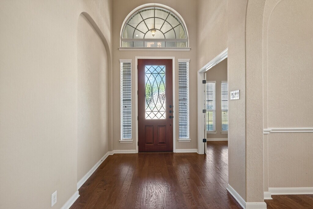 Located in the gated community of Manor Creek and conveniently situated near the community pool, this well-appointed home features a grand entry with hardwood floors that open into a spacious foyer. The main level includes a bedroom with an adjacent full bath, a formal dining room, and a dedicated office. The open living area connects seamlessly to the kitchen, which offers a center island, granite countertops, a gas cooktop, and abundant cabinetry. The primary suite overlooks the backyard and features dual vanities. Ideally located near schools, shopping, medical facilities, restaurants, and entertainment. Applicants must have a 600+ credit score & income 3 times the monthly rent. Please provide 2 months' pay earnings statements. Apply at . Pay the APP fee online - Separate Applications for everyone over 18. Roommates must qualify individually. 1 Pet only; Pet Screening required. Security Deposits are due 24 hours after application approval; an Administration Fee of $100 is due at move-in. 30-day max move-in hold. AGENTS, THE SHOWING COMMISSION IS $350 - PLEASE SUBMIT A COMPENSATION AGREEMENT BETWEEN BROKERS (TXR-2402), A W9 & YOUR INVOICE, INCLUDING YOUR TENANT'S NAME FOR COMPENSATION.