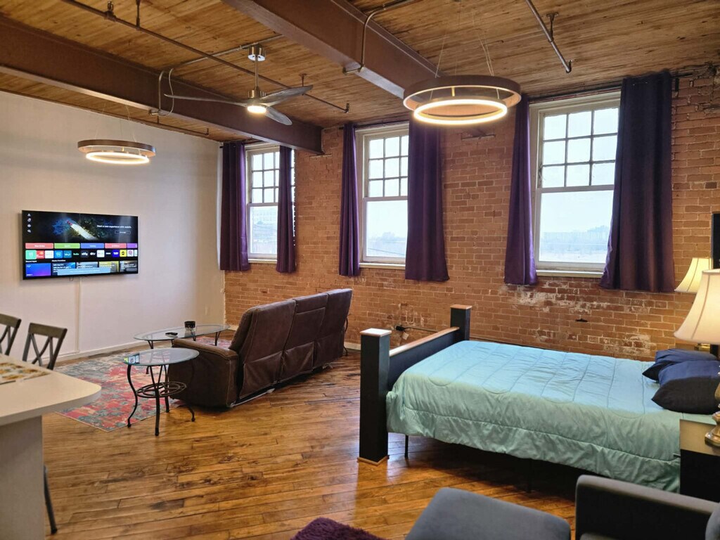 Welcome to the MotorCity Riverfront Loft, a cozy retreat ideal for couples and business travelers. Feel at home in this renovated loft. This apartment features a full kitchen and a spacious living area. Enjoy modern amenities like Wi-Fi and air conditioning for relaxation. Located near major attractions, you can explore Detroit effortlessly while enjoying a home-like atmosphere during your stay. Smoking is prohibited. If outdoor cameras, doorbell devices, or internet are tampered with, this qualifies for immediate cancellation of your reservation. No children are allowed. Gatherings and parties over the maximum unit occupancy are prohibited. All visiting guests must be reported and approved by the host. [SI]