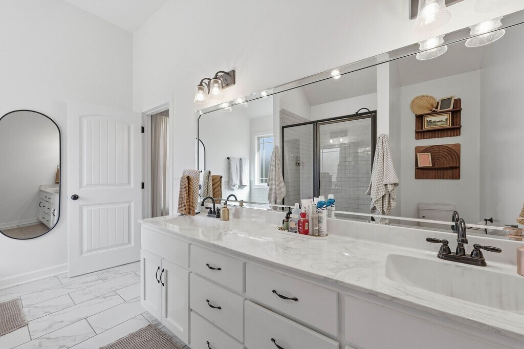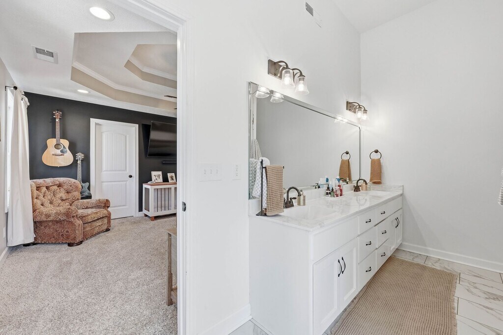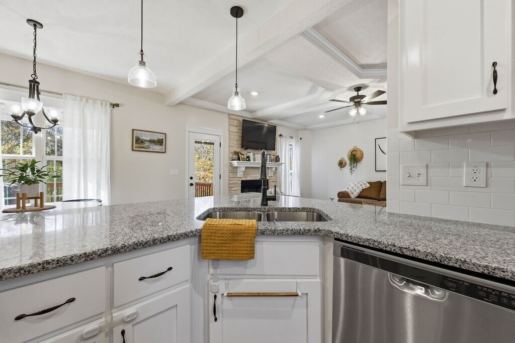 This like new three bedroom, two and a half-bath home in Sango is conveniently located just minutes from restaurants, shopping, I-24 and more! The main level features a large living room with a stunning stone fireplace and a beautiful eat in kitchen complete with granite counters, stainless steel appliances, and a convenient breakfast bar! A formal dining room with an elegant coffered ceiling and wainscoting adds the perfect touch of sophistication! The primary suite offers a full bath with a double vanity, soaking tub, and tiled shower! Both guest rooms are generously sized for comfort and versatility! The large bonus room features a door and closet, making it easily usable as a fourth bedroom! Enjoy the wonderful outdoor space with a covered deck, fenced yard, and a tree lined lot with no backyard neighbors! Pet Rent Scale - Dogs: $25.00 per month