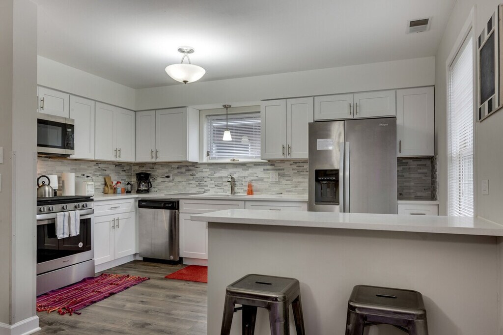 This unique property offers two separate condos under one roof, providing two kitchens, dining rooms, and living rooms for your convenience. With a total of 6 bedrooms and 4 bathrooms, this spacious home comfortably accommodates up to 12 guests. Essentials such as toilet paper, soaps, shampoos, towels, linens, and even coffee and tea are provided to make you feel at home. The property includes two fully equipped kitchens and multiple living and dining areas, ensuring ample space for relaxation and entertainment. Each kitchen is stocked with everything you need to prepare meals during your stay. You'll have full access to the home and basement laundry room. Street parking may be available, but it is not guaranteed. To secure a spot, use parking apps like SpotHero or ParkWhiz. The property is situated in a vibrant city area, so some ambient noise is part of city living. Guests aged 18-24 may book on an exception basis. Local guests are permitted to book on an exception basis only. Parties, gatherings, and group events are strictly prohibited, and unauthorized gatherings or events will result in termination of the reservation without refund. Only registered guests may access the property, and any additional visitors must be declared and pre-approved. Quiet hours are from 10:00 PM to 8:00 AM, and failure to respect these hours may result in termination of the reservation without refund and additional fines. Smoking is prohibited inside the unit and on the building premises, with a $500 remediation charge for violations. A $150 lockout fee applies per occurrence, and lost keys or remotes will incur a $50 replacement fee each. Late check-outs will incur a $250 fee. Guest verification may require signing a rental agreement, providing a government-issued photo ID, confirming contact details, and submitting a selfie matching the ID. Additional screening is conducted after booking, and reservations that do not pass verification may be declined. There is a third condo in the basement that is a long-term rental unit. Registration Number: R2 [SI]