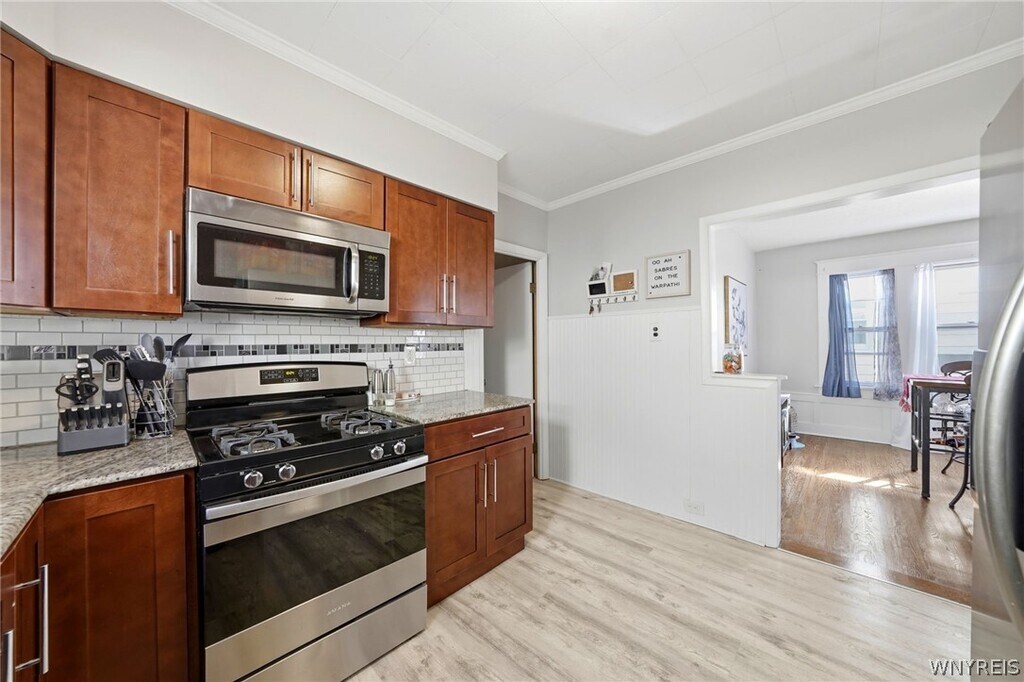 226 Tacoma is a 3 bedroom lower unit. Remodeled kitchen with stainless steel appliances. Separate laundry in the basement- washer/dryer included. Private covered rear patio w/ awning. Off Street garage parking space. Large living room and formal dining room. Beautifully remodeled bathroom. Forced air. Basement for storage. Walking distance to Hertel Ave. and all the North Buffalo hotspots. Pets Welcome (1-2 cats or small dog). Gas Oven/Range,Refrigerator and Microwave Included. MLS ID B1675250