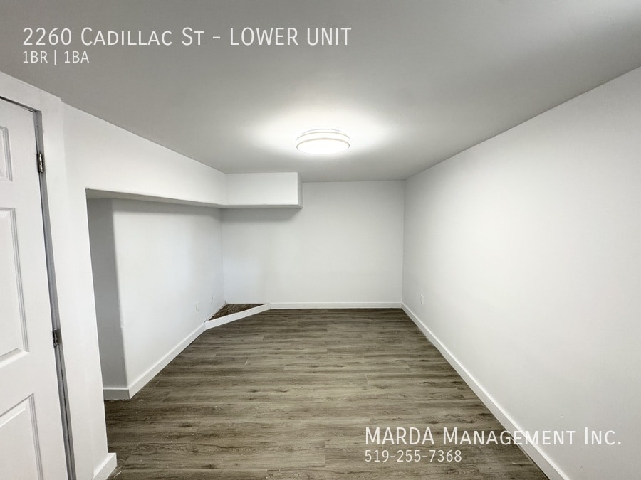 Welcome to 2260 Cadillac St Lower, a newly renovated 1 bedroom, 1 bathroom unit located in East Windsor, close to major amenities and just minutes from Stellantis (Chrysler) Windsor Assembly Plant, shopping, and restaurants. This unit features laminate flooring throughout, with tile in wet areas for easy maintenance. The open concept living, dining, and kitchen area offers a bright and functional space perfect for everyday living. The kitchen has been fully updated with new white cabinetry, modern countertops, and newer stainless-steel appliances, including a fridge and stove. The bedroom is spacious and includes a large closet for ample storage. Shared laundry is available within the building for added convenience. Tenant responsible for 20% of hydro, water, and gas. One-year minimum lease. First and last months rent and a credit check are required. Professionally managed by MARDA Management, offering 24/7 maintenance support with a live agent and easy, convenient rent payment options. Call MARDA MANAGEMENT today at or email to schedule your viewing. Freshly Painted Laminate Flooring No Smoking Allowed Pet Friendly