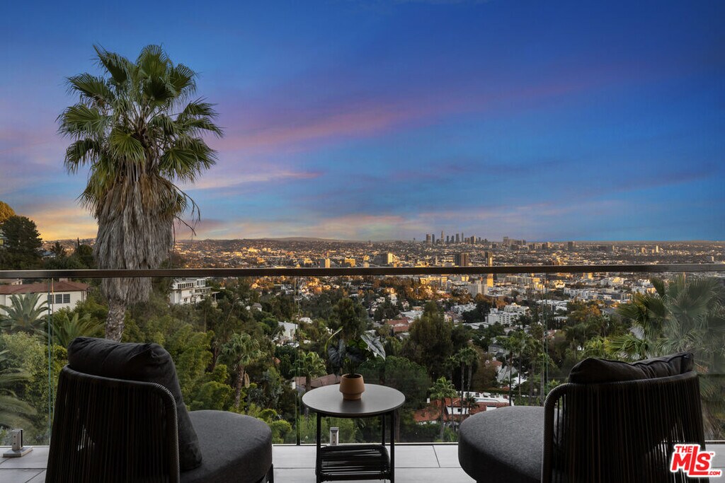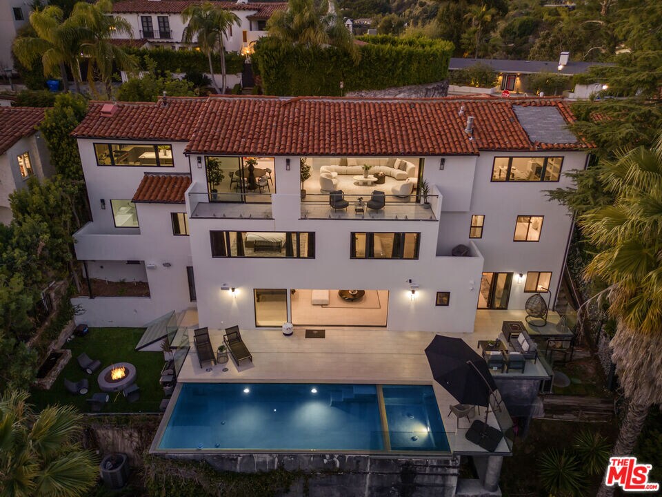 Exquisite Entertainer's Villa in Hollywood Hills Fully Furnished + MoveIn ReadyStep into sweeping panoramic views and refined design in this recentlyrenovated SpanishContemporary residence nestled on a top view street in the prestigious Outpost Estates. Featuring 4 bedrooms and 4 baths across approximately 4,079sqft of living space, this threelevel home sits on an 11,625sqft lot. Compass+ the main level, you'll find an open plan anchored by a private courtyard, living room with balcony, study separated by a striking marble fireplace, dining room and a chef's kitchen equipped with topoftheline appliances. Compass+1The primary suite offers a spacious walkin closet, dual vanity, soaking tub and private patio. The lower floor delivers an entertainmentlevel flex space ideal for a screening room, gym or yoga studio opening via pocket Fleetwood doors to an infinity pool and spa with citylight views. features include builtin audio, firepit terrace, twocar garage, waterfiltration system, Nest thermostats and custom finishes throughout. MLS# 25615561