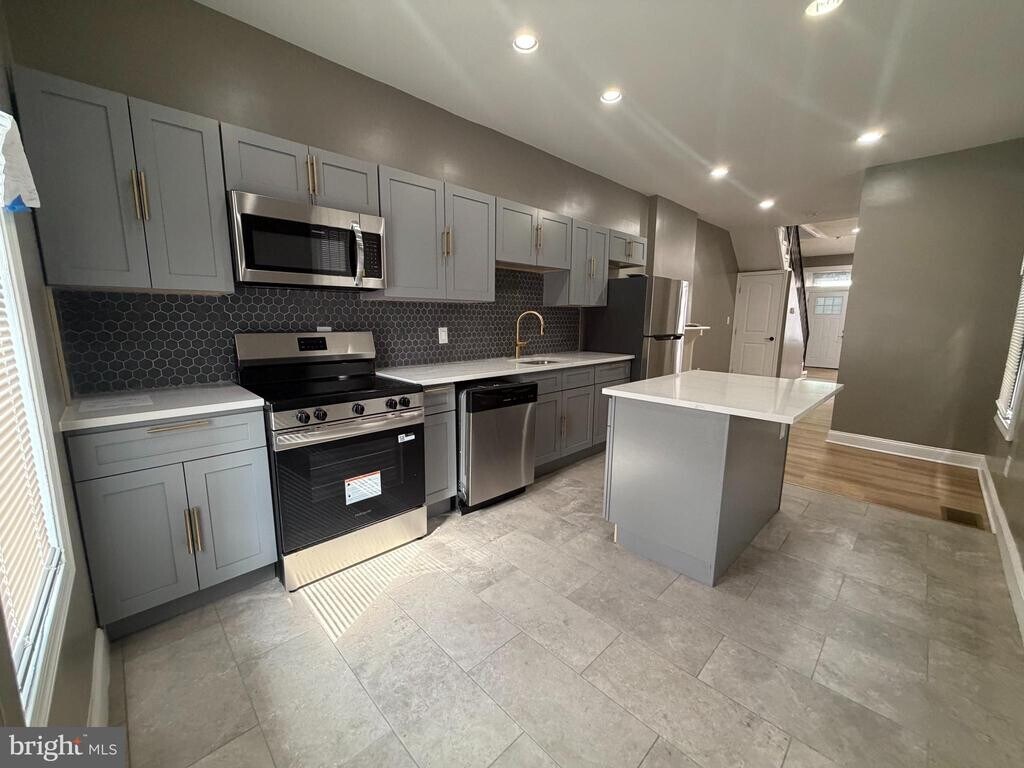 Beautifully renovated 3-bedroom home offering a modern open-concept layout and stylish finishes throughout. The main level features luxury plank flooring, a convenient half bath, and a stunning eat-in kitchen with quartz countertops and upgraded fixtures—perfect for everyday living and entertaining. Upstairs, you’ll find three well-sized bedrooms and a fully renovated bathroom with contemporary finishes. The property also includes an unfinished basement with laundry, providing additional storage and functionality. Ideally located near Temple University with easy access to public transportation, major roadways, shopping, and dining. A perfect blend of comfort, convenience, and modern style—ready for the right tenant to call it home.
