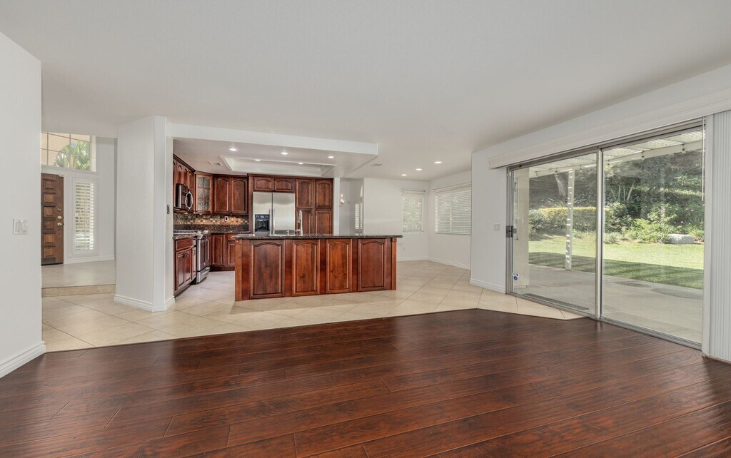 Updated 5-bedroom 3-bathroom two-story home in Reche Canyon. Formal entryway, living room/dining room combo, one bedroom and bathroom downstairs. Huge kitchen with island, breakfast nook, and included stainless steel appliances is open to the family room with fireplace. Spacious primary suite with dual sinks, separate shower and soaking tub, and walk-in closet. Beautifully landscaped private backyard with covered patio. Indoor laundry with included washer and dryer, three-car garage. Rent includes gardener. Excellent Credit required, NO pets, NO smoking.