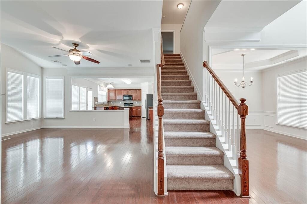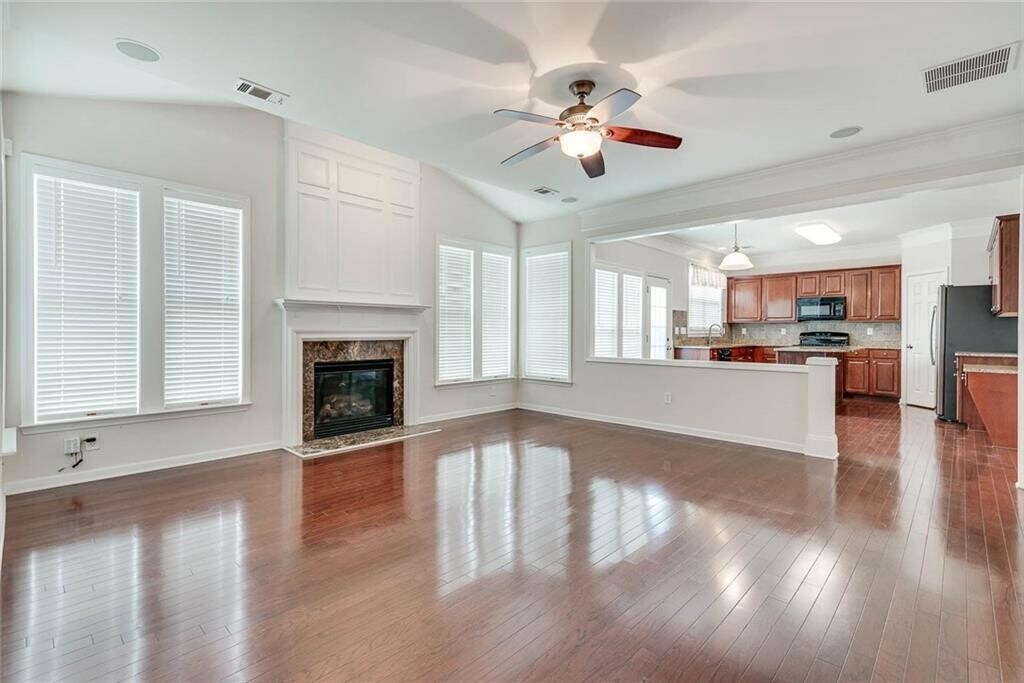 Gorgeous Front Brick 4 Beds,2.5 Bath w Additional Office Room on Main in Highly Rated Gwinnett Schools. Open Floor Plan. All Hardwood on Main Level. Spacious Family Room w Fireplace. Kitchen w Granite Countertop,Island,Separate Breakfast Area. Stainless Steel Refrigerator. Separate Dining & Living Room. Spacious Master Bedroom w Vaulted Ceiling,Large Walk-in Closet. Masterbath w Double Vanities,Separate Tub & Shower. Additional 3 Bedrms are Upstairs. Laundry Room Upstairs. Private Fenced Backyard. Great & Quiet Neighborhood w Swim & Tennis,Playground. Minutes to Mall of GA. Great Location. NO PET. Move-in Ready!
