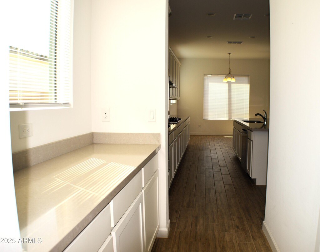 New build beautitully upgarded 4 bedroom 2.5 bathroom 2,700sqft single level home for rent. Gourmet Kitchen with gas stove,quarts countertops and stainless appliances. Plank tile and carpet flooring throughout. 10 foot ceiling. Every room has LED ceiling fans. Developed oasis back yard. Community pool,pickelball court and more.