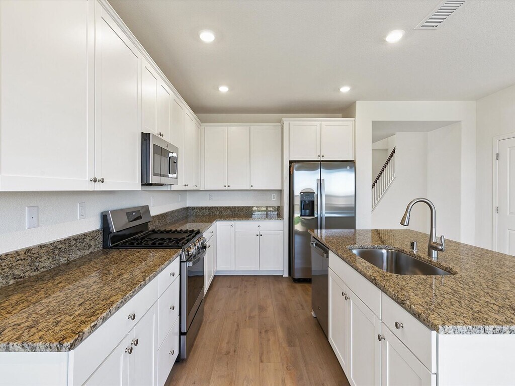 Introducing The Cypress, a stunning new construction 2-story home located in the Pioneer Meadows master plan in Sparks, Nevada. This luxurious residence boasts 4 spacious bedrooms and 2.5 bathrooms, perfect for those seeking ample space and modern living. The kitchen features elegant white shaker cabinets, granite countertops, and stainless steel appliances, creating a sleek and sophisticated atmosphere. The extensive wood look luxury vinyl plank flooring throughout the lower level adds a touch of warmth and charm to the home. The primary suite is a true retreat, offering a luxurious space to unwind and relax. With a 3 car tandem garage, separate laundry room with washer and dryer, and energy efficient heating and cooling, this home has everything you need for comfortable and convenient living. High end finishes throughout the home showcase the quality and craftsmanship of this new construction property while the fully landscaped rear yard with large patio provides ample outdoor entertaining space. Don't miss your chance to call this beautiful and spacious property in a desirable location, your new home.