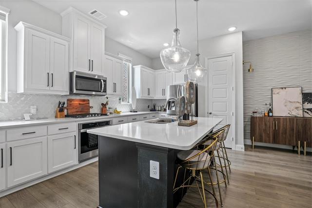 Introducing a luxurious 2-bed, 2.5-bath townhome, just 20 minutes from downtown Dallas. Impeccably maintained this three-story layout provides a bedroom and full bath on the first floor. Living space on the second complete with a gas range, and beautiful white cabinets. On the third floor you'll find the office along with a must see primary suite. Perfect blend of convenience and elegance in a vibrant location. Your dream urban retreat awaits! All appliances included, refrigerator along with washer and dryer for tenant us is in place.