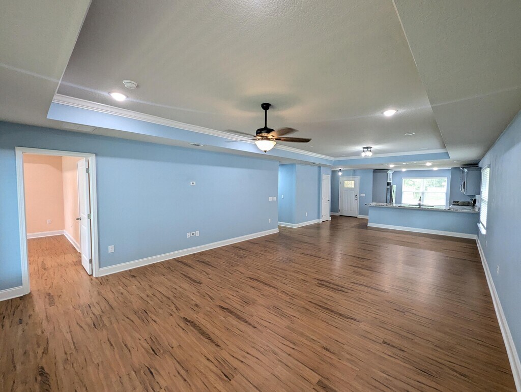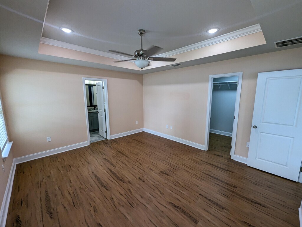 Tucked away at the end of a peaceful street among other newer homes, this 3-bedroom, 2-bath gem combines modern elegance with everyday comfort. From the moment you step inside, you'll notice the thoughtful details and inviting design that make this home stand out.Interior Highlights- Elegant crown molding, stylish lighting, and easy-care vinyl plank flooring set the tone throughout- A gourmet kitchen complete with premium granite countertops, gray shaker cabinetry, stainless steel appliances, a custom coffee station, eat-up breakfast bar, and corner pantry- Spacious primary suite featuring a recessed ceiling, dual vanities, a tiled walk-in shower with bench, and an oversized walk-in closet- Convenient bonus nook plus a large laundry room with built-in cabinetry