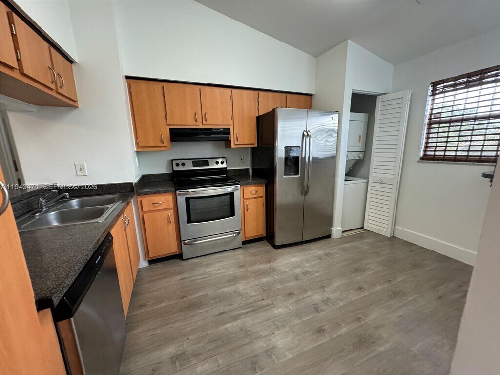 Townhouse big one bedroom one full bath and a half with open floor plan and high ceiling. Stainless steel appliances. Gate community with pool, fitness center, gym and clubhouse. MLS # A11943471